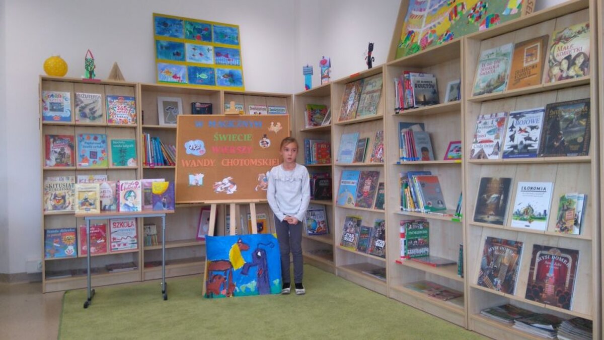 W październiku został zorganizowany w bibliotece szkolnej „Tydzień z Chotomską”, by uczcić pamięć naszej Wielkiej Poetki, zmarłej w sierpniu br. Z tej okazji przygotowanych zostało wiele ciekawych przedsięwzięć związanych z życiem i twórczością Wandy Chotomskiej. Do działań włączyli się zarówno młodsi jak i starsi uczniowie naszej społeczności szkolnej. I tak…