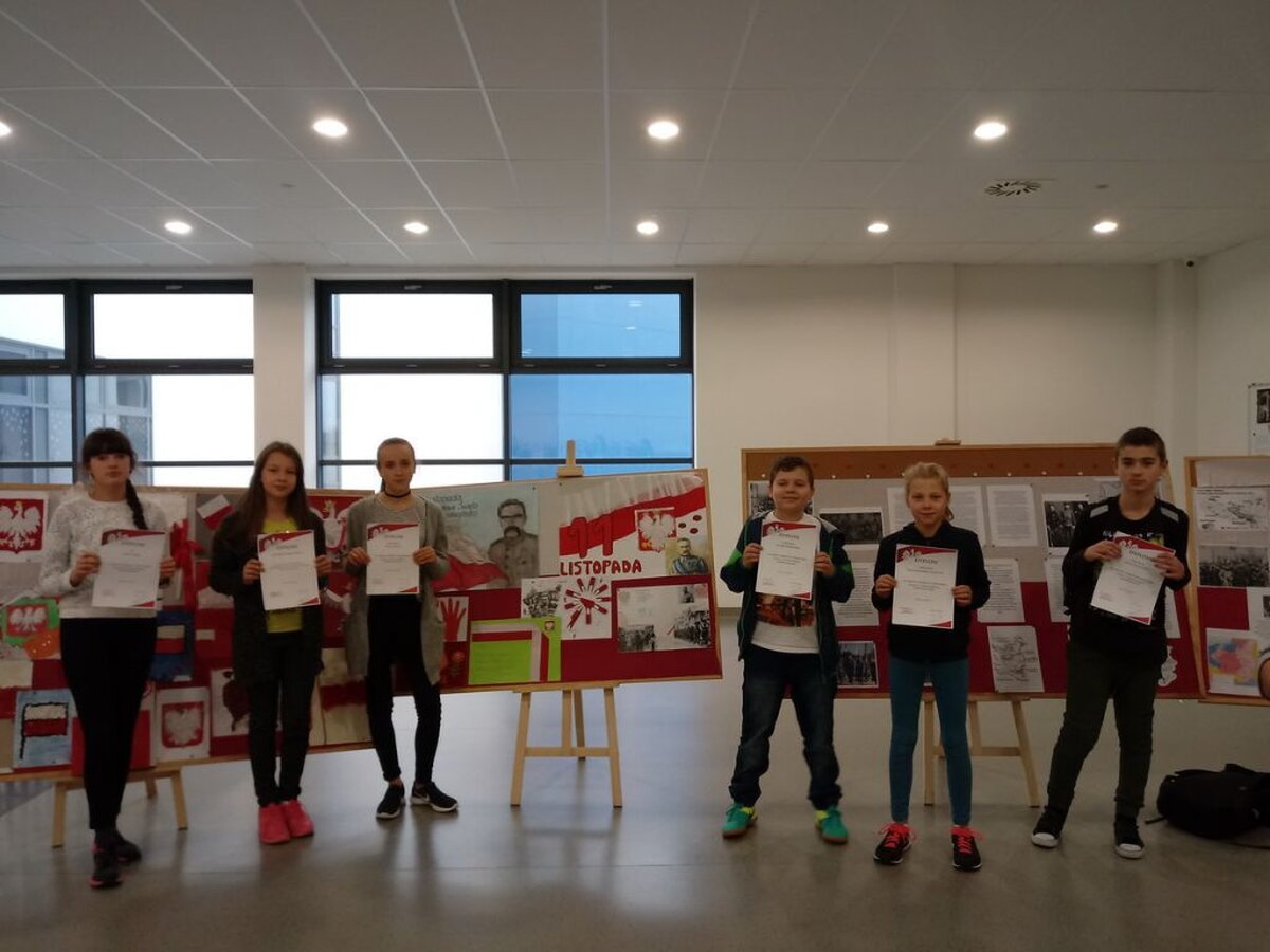 W poniedziałek 13 listopada został rozstrzygnięty konkurs historyczny: PLAKAT Z OKAZJI ŚWIĘTA NIEPODLEGŁOŚCI. W konkursie tym wzięli udział uczniowie klas 5,6 i 7 SP.