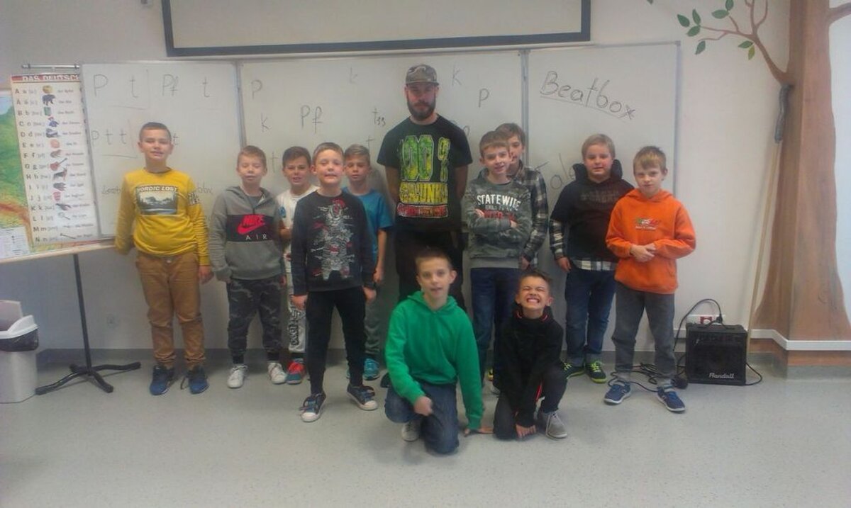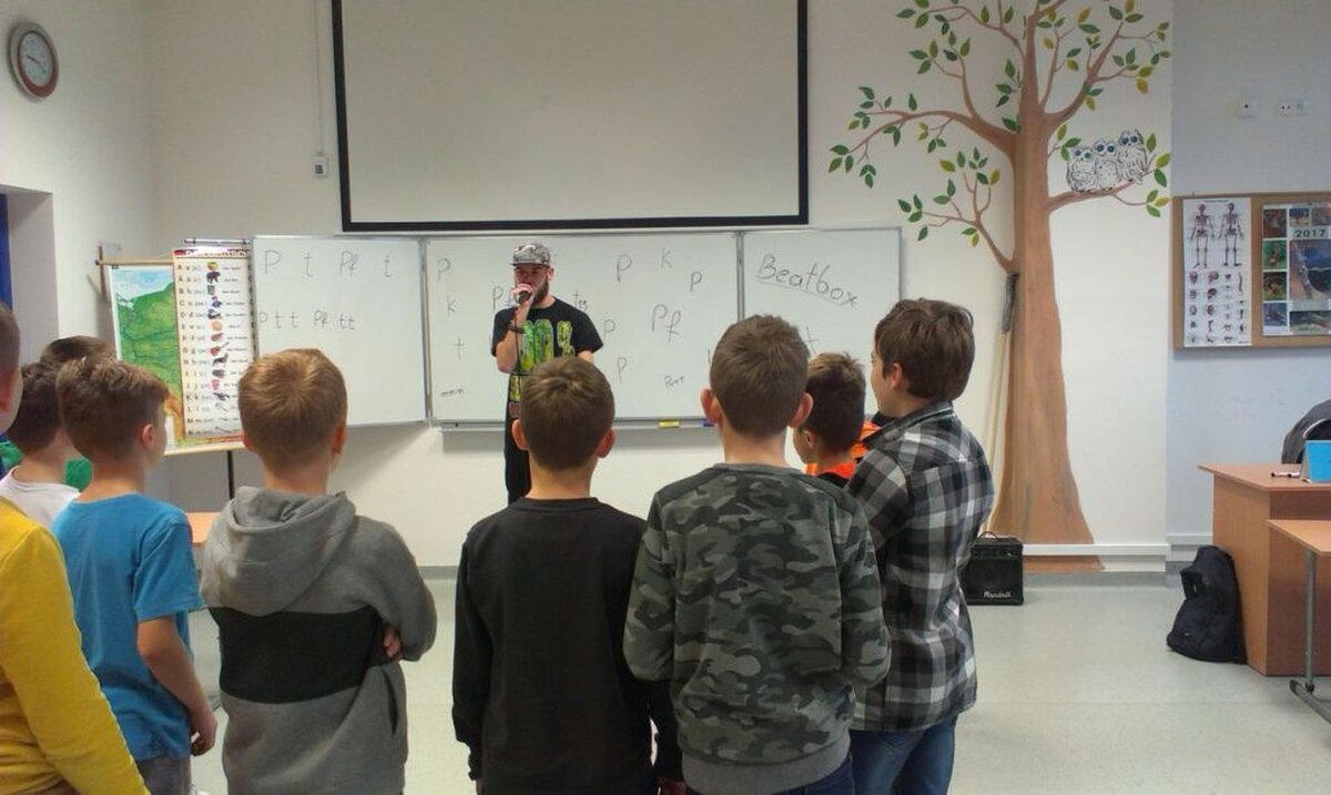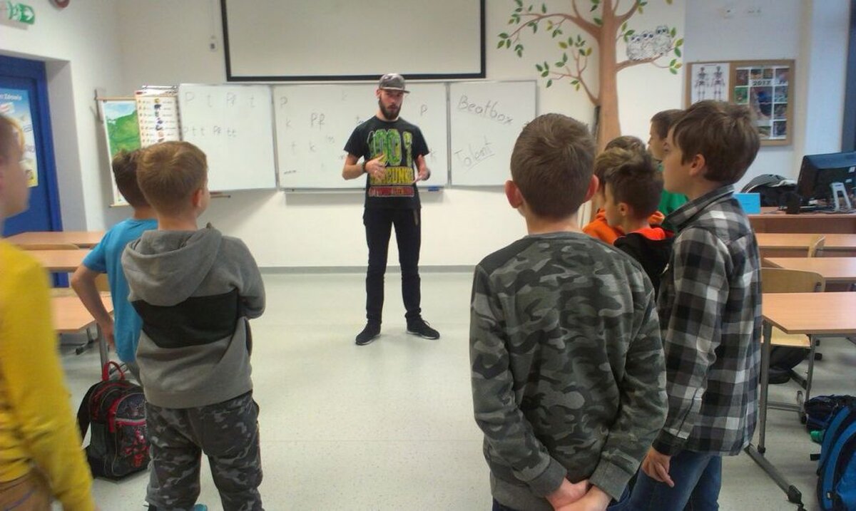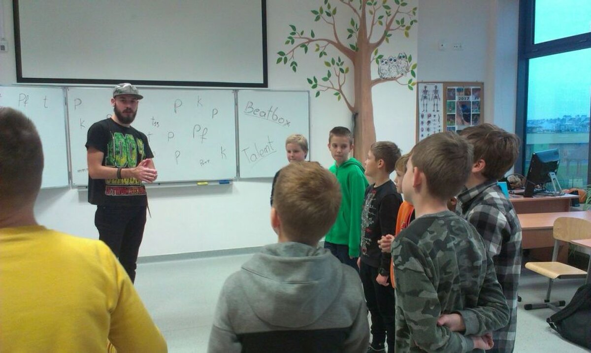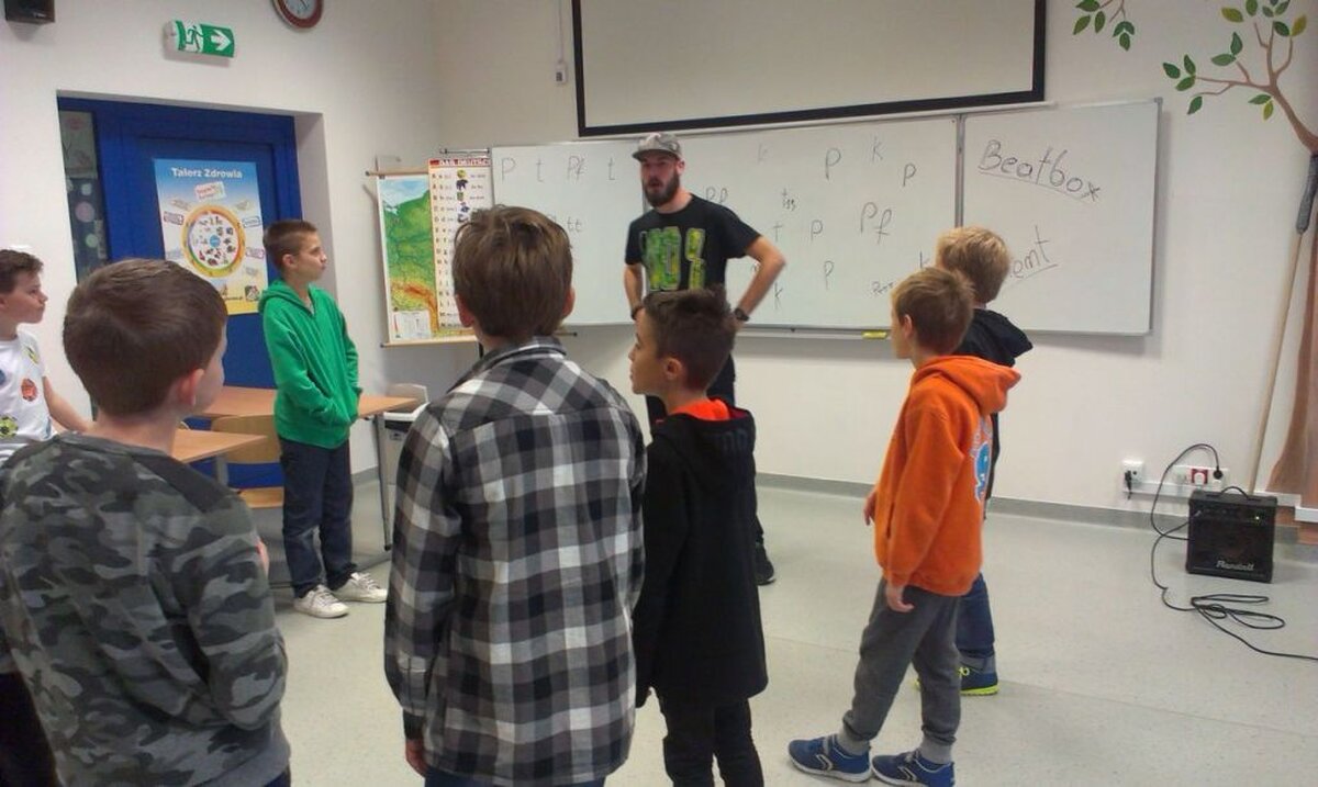 W poniedziałek 13 listopada 2017 r. część uczniów z klasy 4c uczestniczyła w warsztatach wokalnych, których głównym tematem był beatbox – forma rytmicznego tworzenia dźwięków, np. perkusji za pomocą narządów mowy. Warsztaty te poprowadził Pan Chrystian Kucharski – beatboxer, student Uniwersytetu Rzeszowskiego. Głównym celem zajęć było zwrócenie uwagi uczniów na rozwój osobisty, odkrywanie swoich talentów oraz ich rozwijanie. Podczas zajęć uczniowie dowiedzieli się, czym jest beatbox i jaka jest jego historia, a także poznali techniki wydobywania podstawowych dźwięków. Duże wrażenie na uczestnikach warsztatów wywarł pokaz muzyki w wykonaniu prowadzącego.