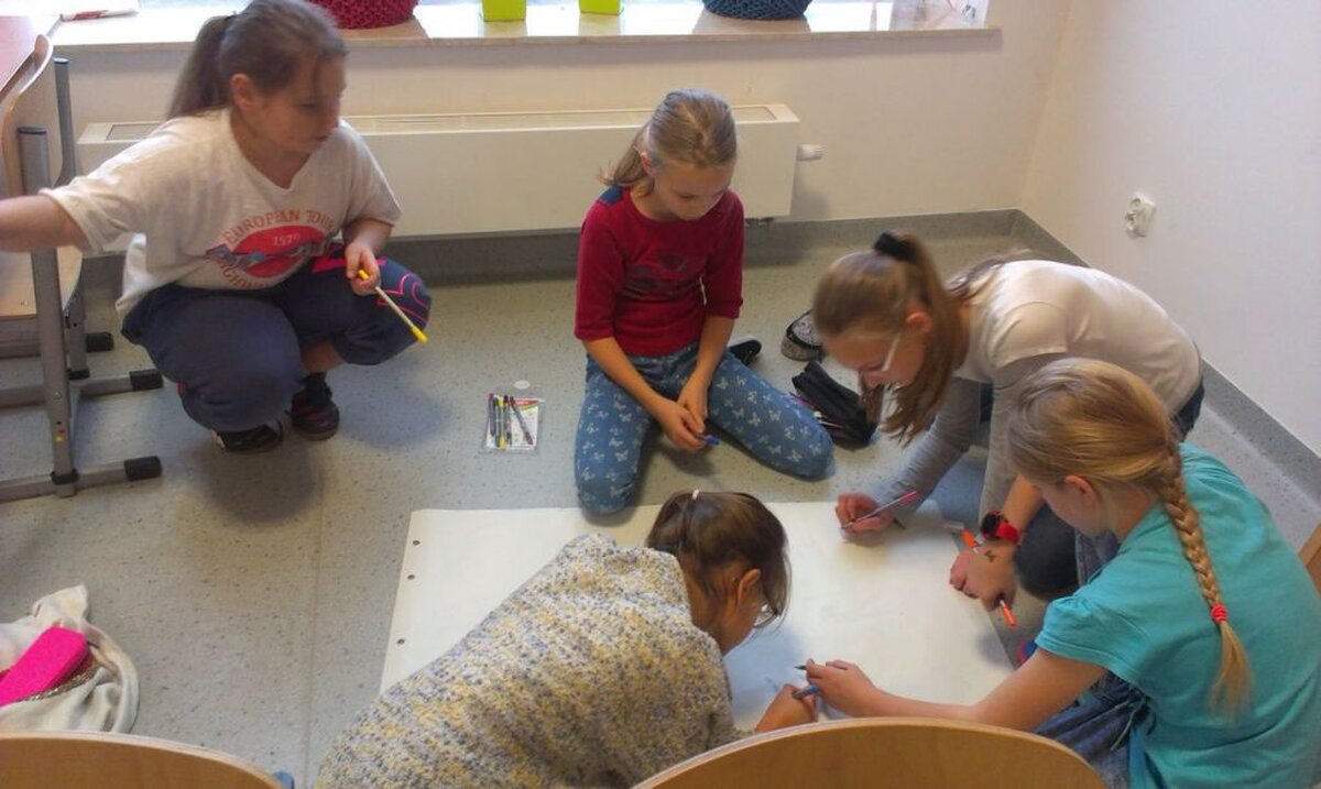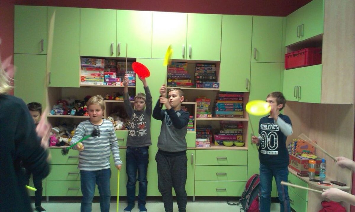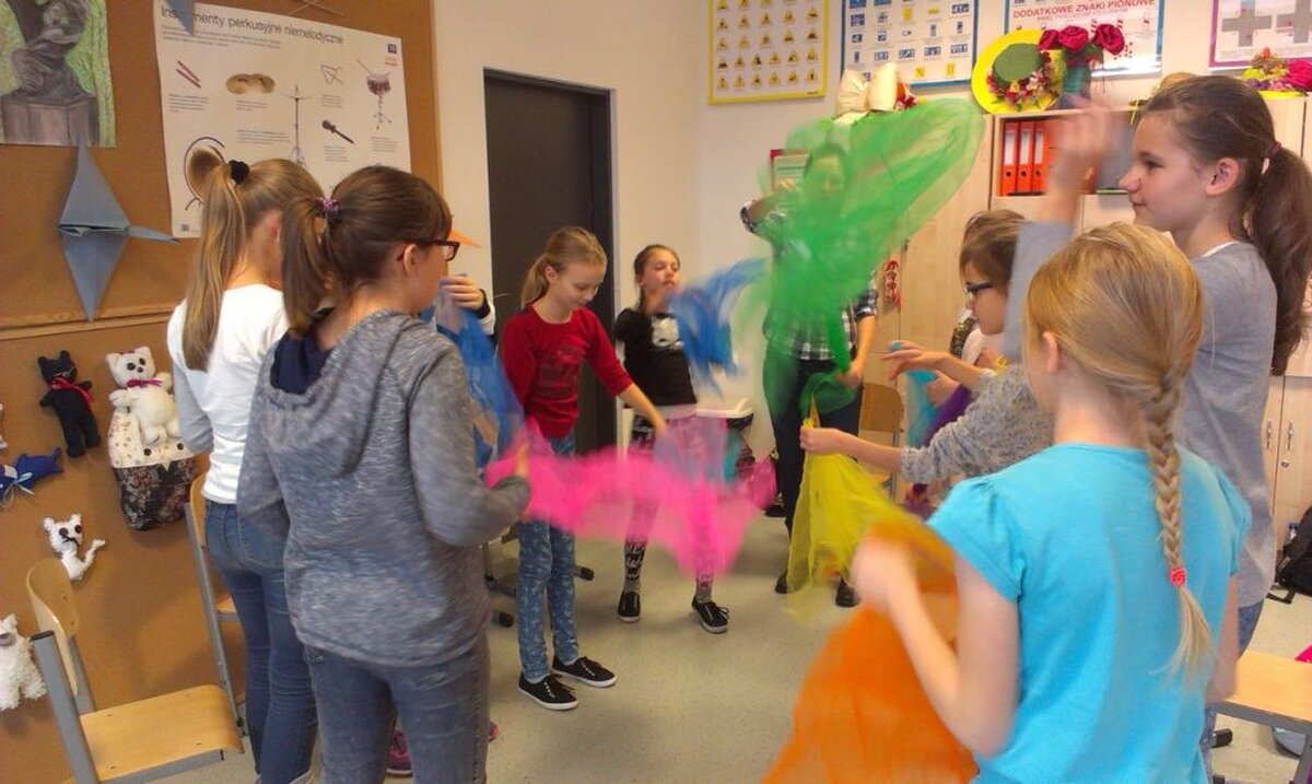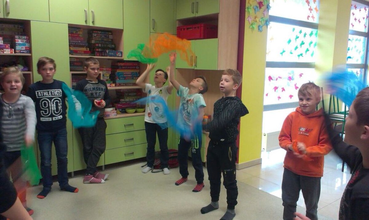 Trzynastego oraz dwudziestego listopada klasa 4c uczestniczyła w zajęciach kreatywnych, które zostały przeprowadzone przez panie Małgorzatę Grabek i Magdalenę Dec z Centrum Socjo-Pedagogicznego „Team”. Głównym celem zajęć było nabycie podstawowych umiejętności społecznych, asertywności oraz zasad współpracy w grupie. Podczas warsztatów uczniowie uczestniczyli w następujących zabawach: nauka żonglowania, budowanie wieży z wykorzystaniem klocków „Bamp”, tworzenie piosenki z układem choreograficznym z wykorzystaniem chustek do żonglowania oraz szarf gimnastycznych.