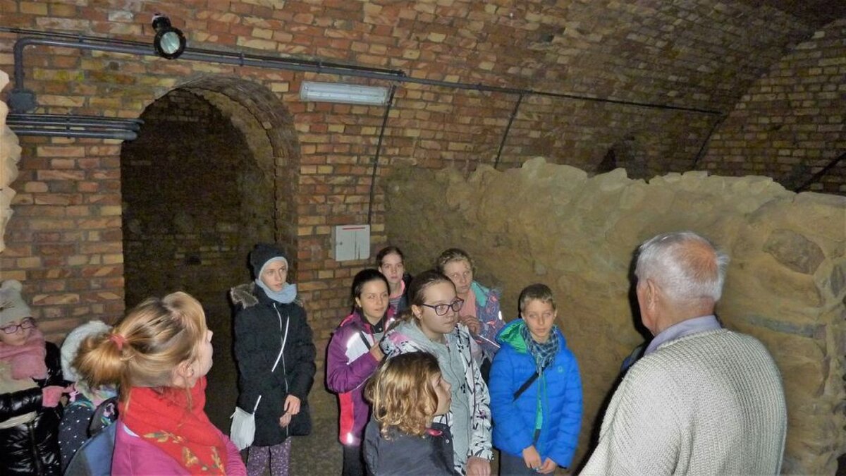 W piątkowe popołudnie 24 listopada grupa uczniów z klas czwartych, uczestnicząca w projekcie „Rzeszów – moje miasto”, wybrała się na zwiedzanie Podziemnej Trasy Turystycznej. Wszyscy dzielnie podążali wąskimi tunelami za przewodnikiem słuchając ciekawostek o naszym mieście z dawnych wieków. Nie stracili odwagi nawet w lochach tatarskich. Przy okazji obejrzeliśmy broń i zbroje dawnych rycerzy oraz zgromadzone w podziemnych piwnicach przedmioty codziennego użytku, z których kiedyś korzystano. Widzieliśmy także dyby dla „mniej grzecznych” mieszkańców Rzeszowa.