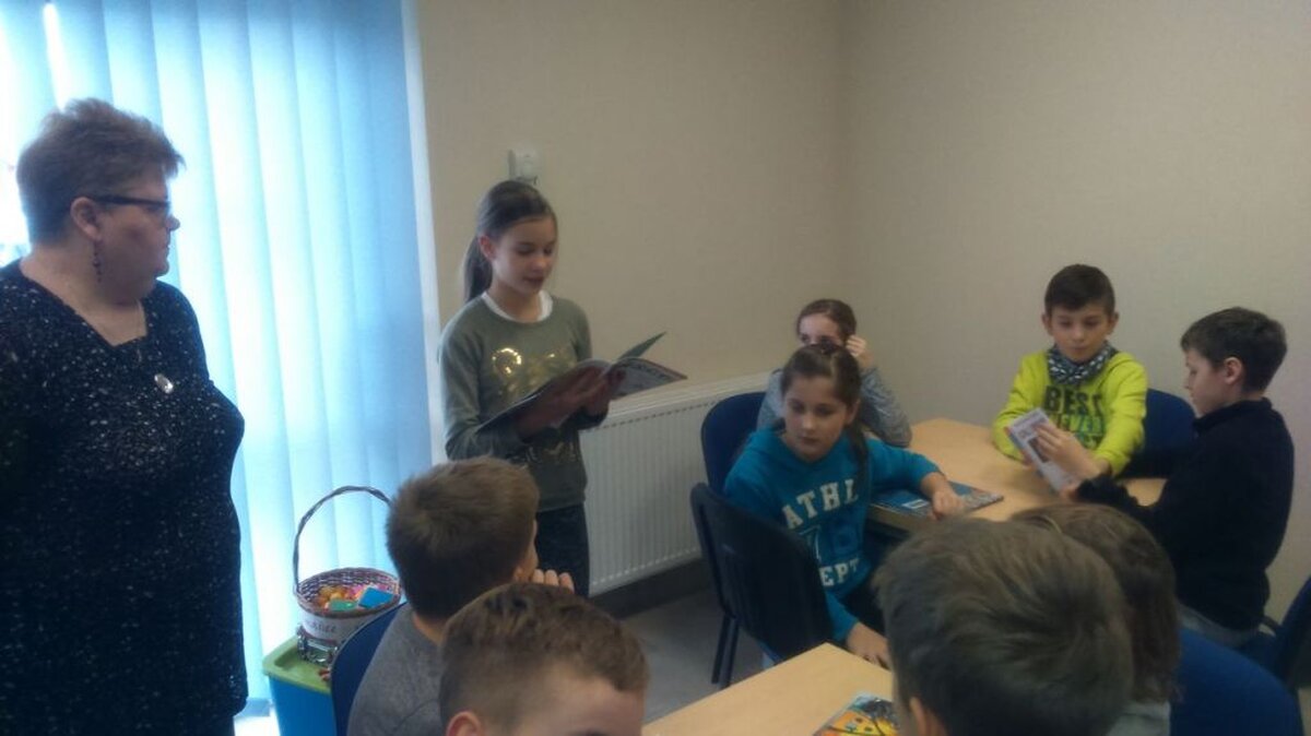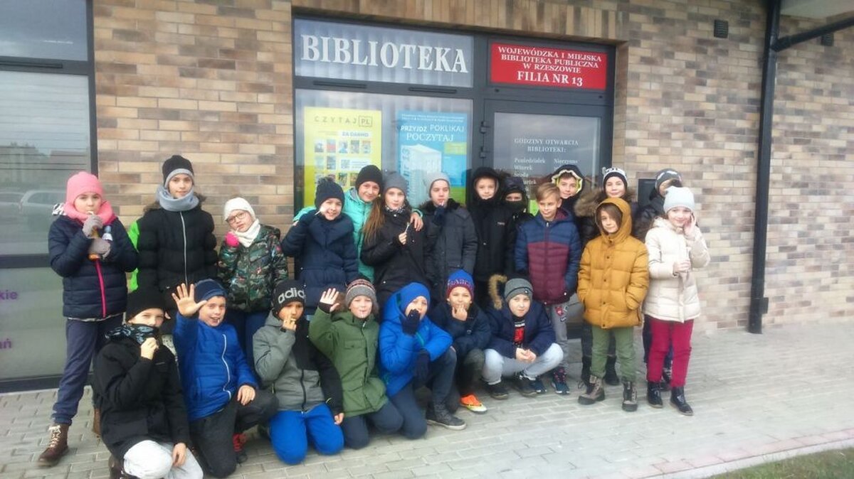 29 listopada, uczniowie klasy 4 b wraz z wychowawczynią udali się do nowootwartej biblioteki na ulicy Iwonickiej. Na miejscu pani Beata Terlicka – kierownik Filii nr 13, w ciekawy sposób opowiedziała dzieciom o bibliotece, o tym, jak można się do niej zapisać i o różnych rodzajach książek. Uczniowie mieli okazję zwiedzić biblioteczne pomieszczenia, obejrzeć książki oraz wziąć udział w zabawach: zagadkach i łamaczach języka – ta druga zabawa szczególnie przypadła wszystkim do gustu.