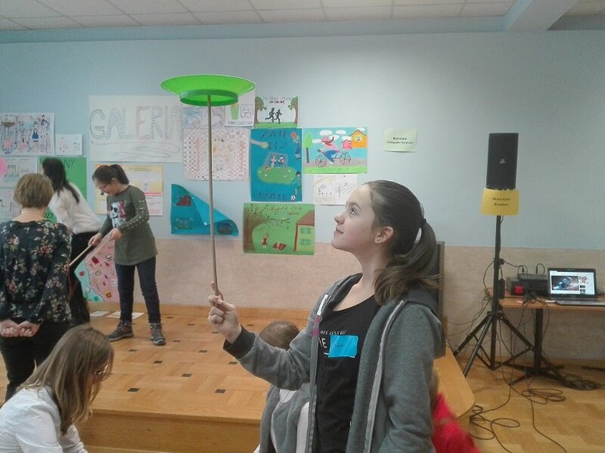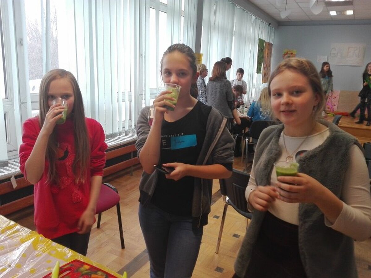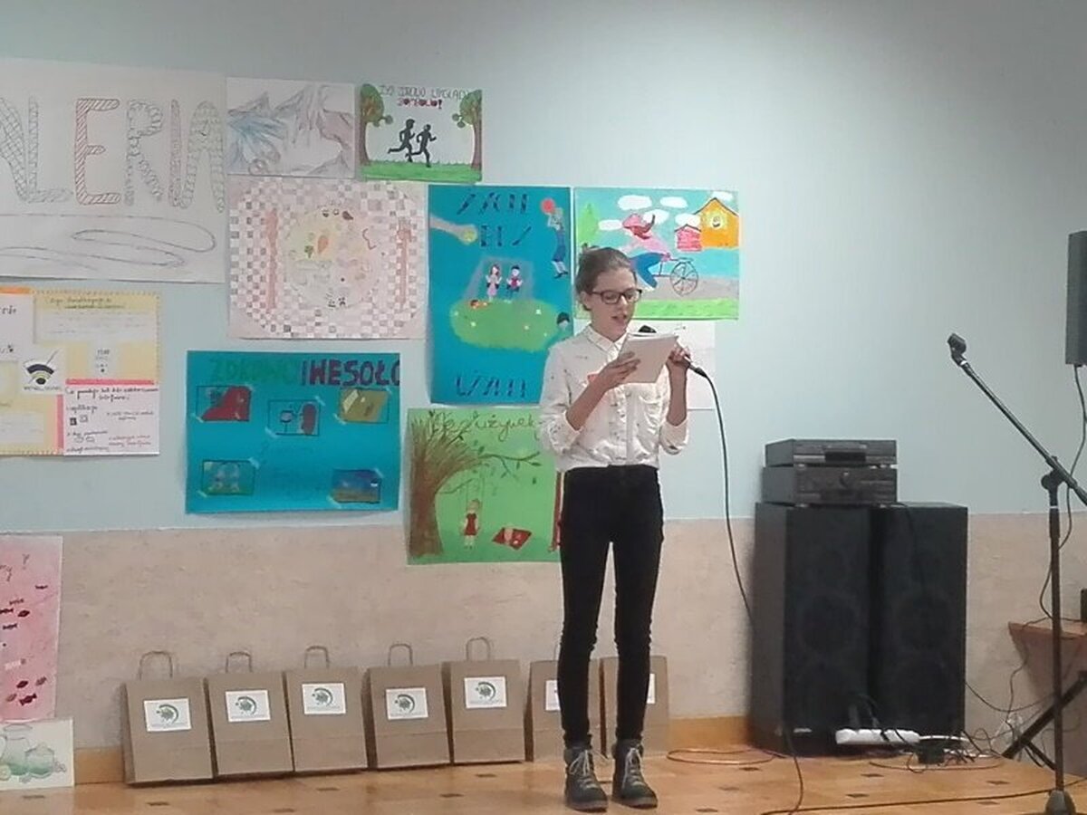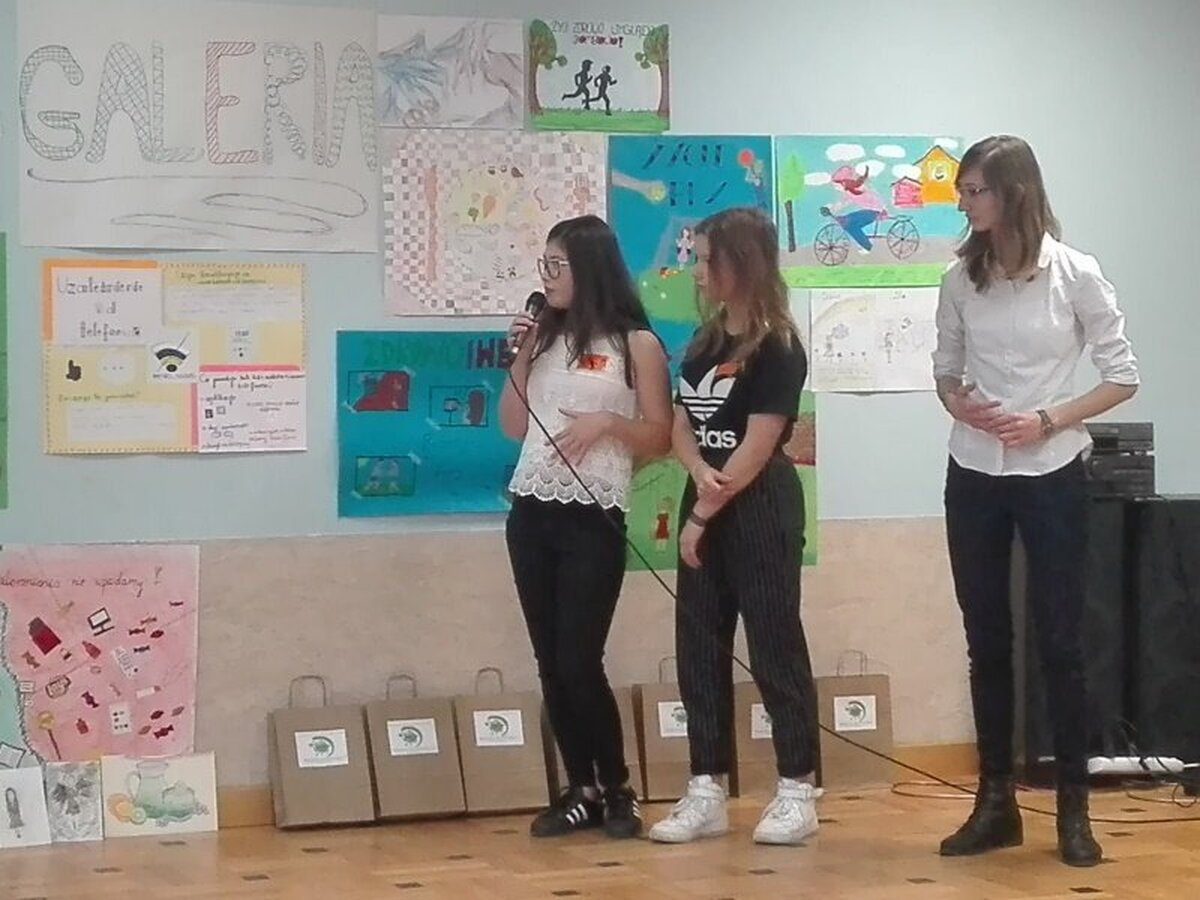 Każda szkoła przygotowała plakaty związane z ideą projektu. Ponadto chętni uczniowie mogli podzielić się swoja pasją. Julia Szura z naszej szkoły zaprezentowała piękne opowiadanie, specjalnie napisane na tę okoliczność, a Zuzia i Ala omówiły przygotowany przez siebie plakat o niebezpieczeństwach związanych z uzależnieniem od telefonii komórkowej. Stres był duży, ale dziewczęta poradziły sobie wyśmienicie.