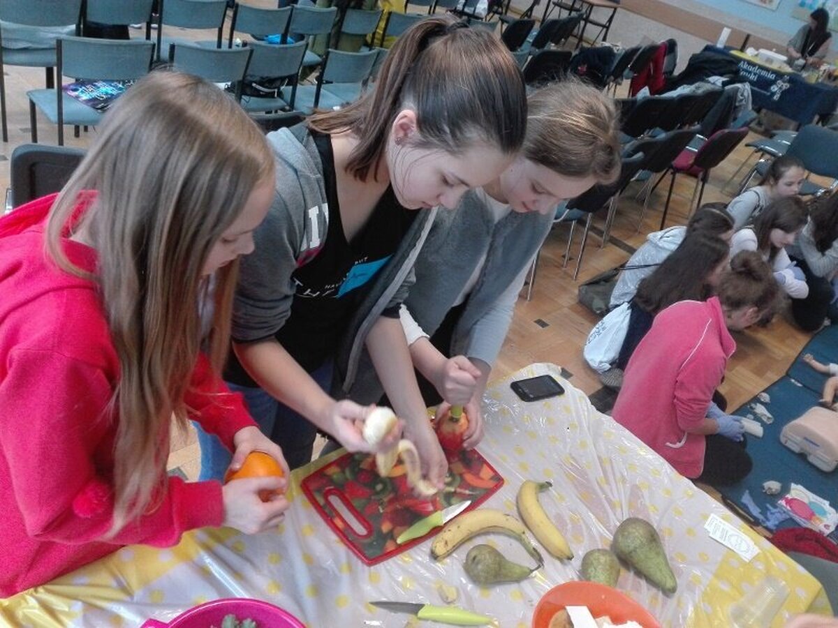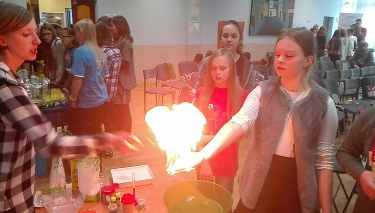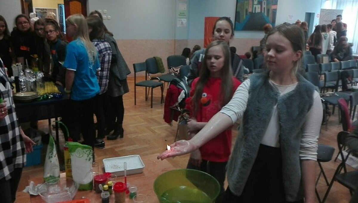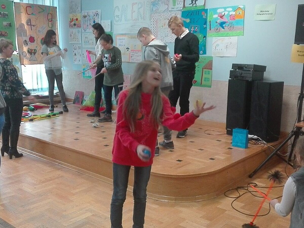 W dalszej części spotkania uczniowie mieli możliwość wzięcia udziału w różnych warsztatach: Beatboxu znanym już w naszej szkole Chrystianem Kucharskim, warsztatach rękodzieła artystycznego, mini warsztatach kulinarnych, pierwszej pomocy, pedagogiki fascynacji (nauka elementów sztuki cyrkowej), laboratorium Młodych Chemików i Fizyków.