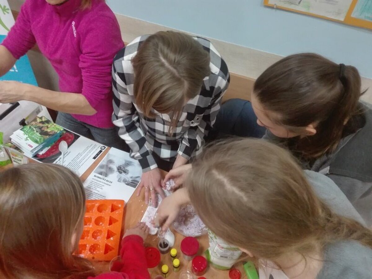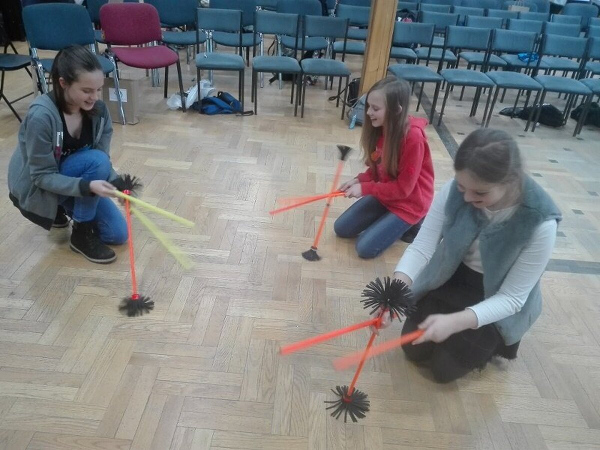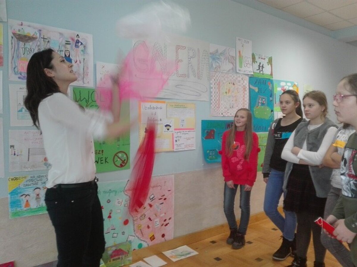 W dalszej części spotkania uczniowie mieli możliwość wzięcia udziału w różnych warsztatach: Beatboxu znanym już w naszej szkole Chrystianem Kucharskim, warsztatach rękodzieła artystycznego, mini warsztatach kulinarnych, pierwszej pomocy, pedagogiki fascynacji (nauka elementów sztuki cyrkowej), laboratorium Młodych Chemików i Fizyków.