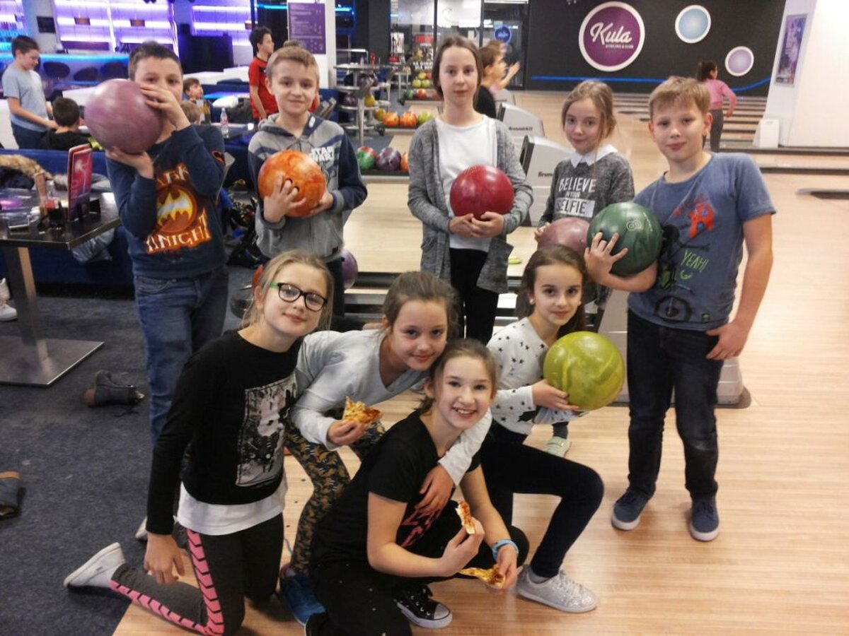 30 listopada 2017 r. klasa 5b była na wycieczce w kręgielni „Kula” w Galerii Nowy Świat. Celem wycieczki było: propagowanie różnych form rekreacji i wypoczynku, zainteresowanie uczniów ciekawą i nietypową dyscypliną sportu, integracja zespołu klasowego, zacieśnianie relacji koleżeńskich.