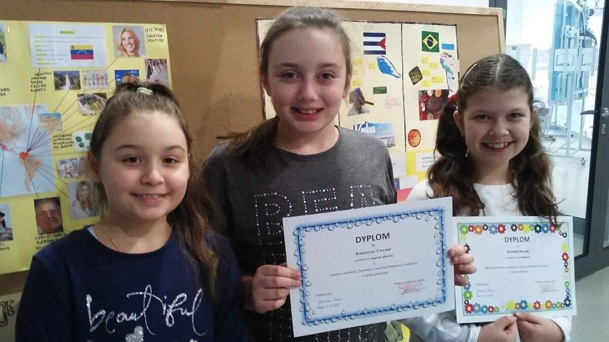 Konkurs dla klas IV, V i VI Szkoły Podstawowej pt. „Spotkanie z Ameryką Południową i Środkową” został rozstrzygnięty. Uczniowie 13 grudnia otrzymali dyplomy oraz małe upominki.
