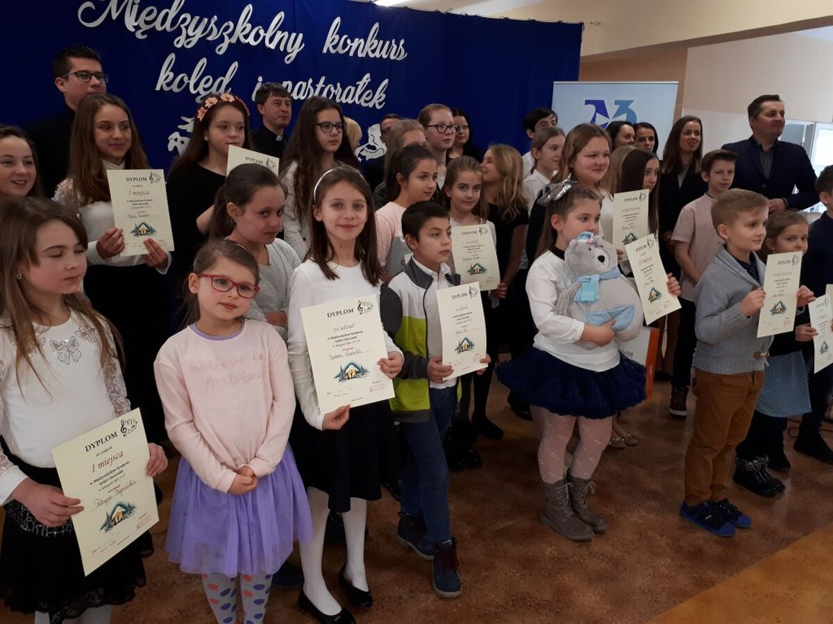 18 stycznia nasze uczennice Zuzia Prażmowska i Basia Wawrzoła wzięły udział w Międzyszkolnym Konkursie Kolęd i Pastorałek. Zuzia zaśpiewała kolędę „O gwiazdeczko coś błyszczała” a Basia pastorałkę „Aniołki z bukietem polnych kwiatów”. Pomimo tego, że tym razem się nie udało zdobyć żadnego miejsca obie dziewczynki zaśpiewały przepięknie wkładając w swoje wykonania wielkie serce i emocje.
