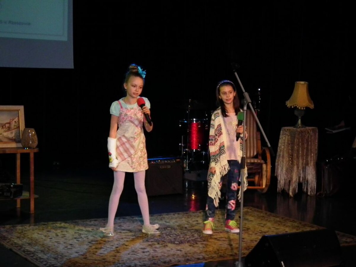 W kategorii ”zespoły” również wyróżnienie zdobyły dziewczynki z klasy 4c Basia Wawrzoła i Wiktoria Pernak śpiewające w duecie piosenkę Eleni „Troszeczkę ziemi troszeczkę słońca” wprowadzając zarówno publiczność jak i jury w wiosenny klimat .Dziewczynkom gratulujemy sukcesu i trzymamy kciuki za kolejne konkursy.