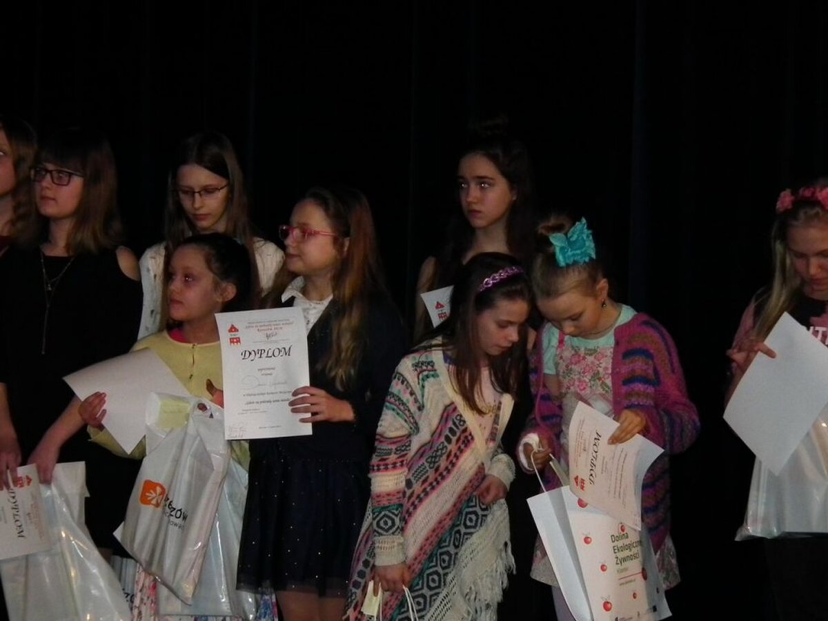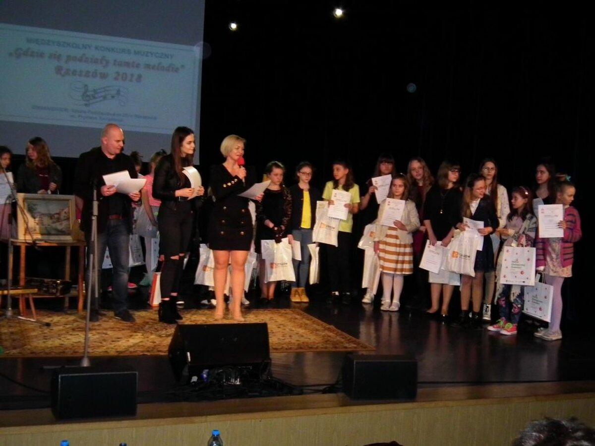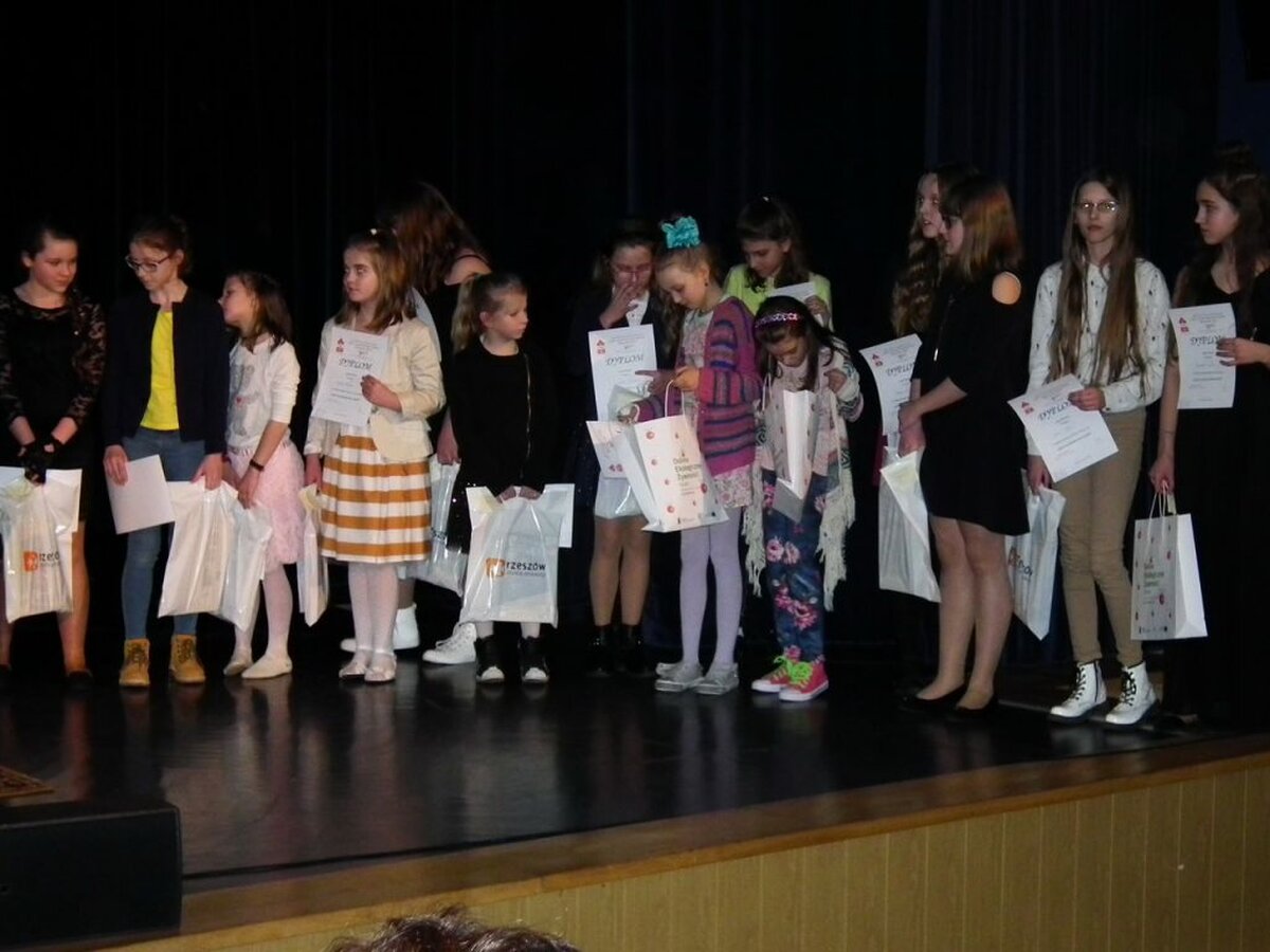 Poziom konkursu nie był łatwy, jednak mimo to udało nam się zdobyć 3-cie miejsce i wyróżnienia. W kategorii „solo” 3 miejsce w piosence „Raz dwa raz dwa” zespołu Maanam zdobyła Zuzia Prażmowska z klasy 5b która zaczarowała wszystkich swoim niezwykle energicznym wykonaniem. Wyróżnienie powędrowało do Dominiki Majchrowicz z kl. 5b, która wykonała piosenkę „Meluzyna” Małgorzaty Ostrowskiej.