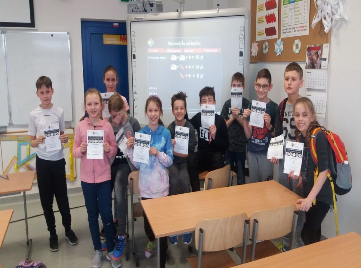 Z okazji trwającego w szkole Tygodnia Matematyki w dniu 13 marca uczniowie klas 4 wzięli udział w turnieju którego hasłem przewodnim była „Matematyka od kuchni”. Trzyosobowe drużyny zmierzyły się z 24 zadaniami przedstawionymi w postaci prezentacji multimedialnej, których tematyka związana była głównie z przepisami i gotowaniem. Do każdego pytania dołączona była prawidłowa odpowiedź oraz krótki opis “Na temat” pełniący rolę edukacyjną.