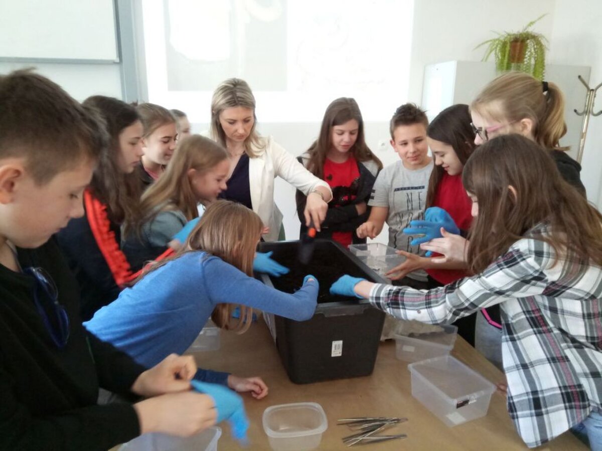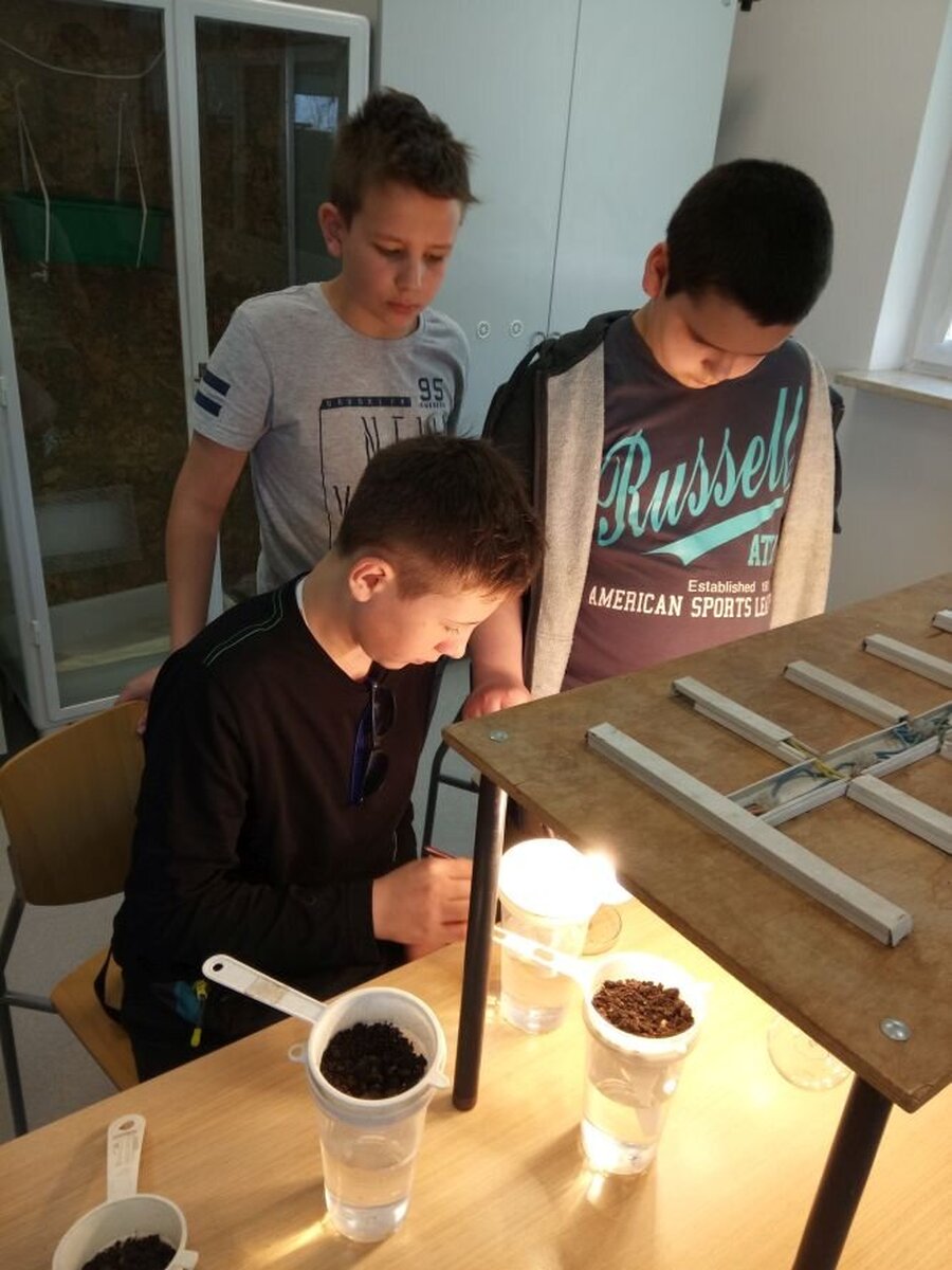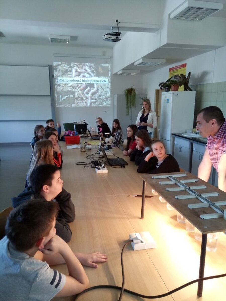 Kolejne warsztaty dotyczyły mikroorganizmów glebowych. Duże wrażenie na uczniach wywarła hodowla dżdżownicy - Eisenia Fetida Sav. Dzięki zastosowaniu odpowiednich technik mieliśmy okazję obserwować różne organizmy glebowe. Pod koniec zajęć każdy z uczestników warsztatów „zaprzyjaźnił się” z dżdżownicą, która pełni ważną rolę w ekosystemach.