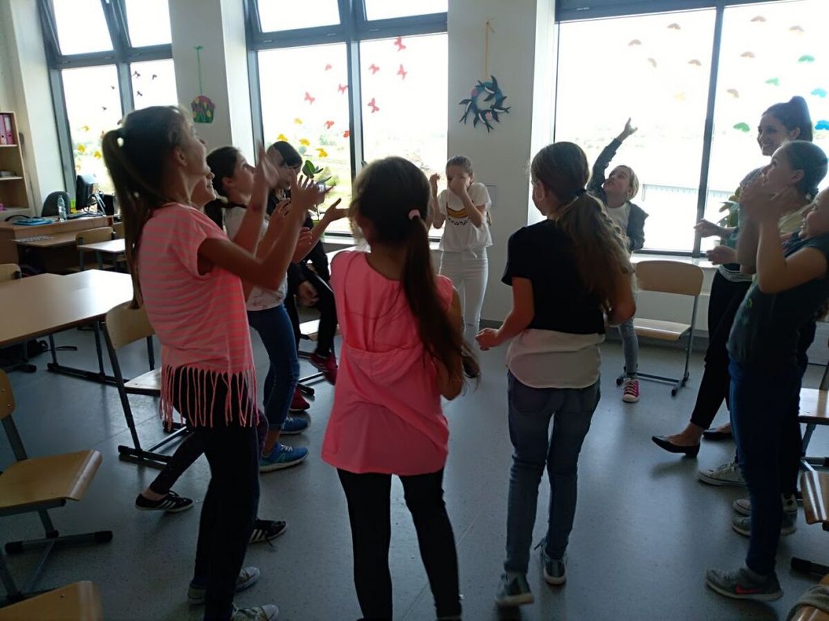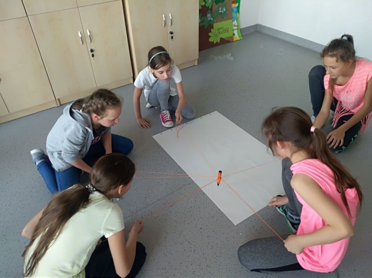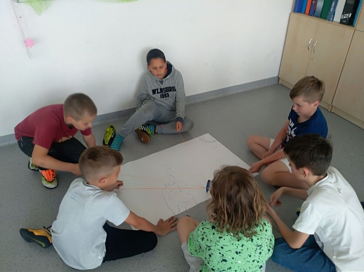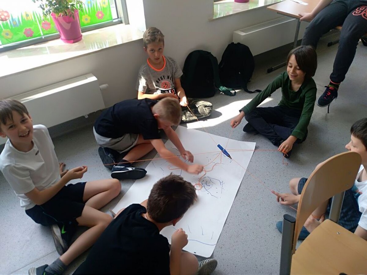 W środę, 25 kwietnia, uczniowie klasy 4b wzięli udział w warsztatach kreatywnych prowadzonych przez panie Małgorzatę Grabek i Magdalenę Dec z Centrum Socjo-Pedagogicznego „Team”. Dzieci, podzielone na dwie grupy wykonywały zadania wzmacniające integrację klasy oraz ćwiczenia pokazujące, jak powinno się pracować grupowo. Uczniowie miło spędzili czas i ze zdziwieniem zauważyli, że dwie godziny warsztatów bardzo szybko minęły na wspólnej zabawie.
