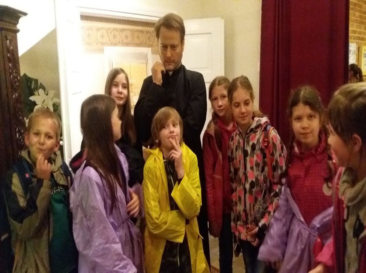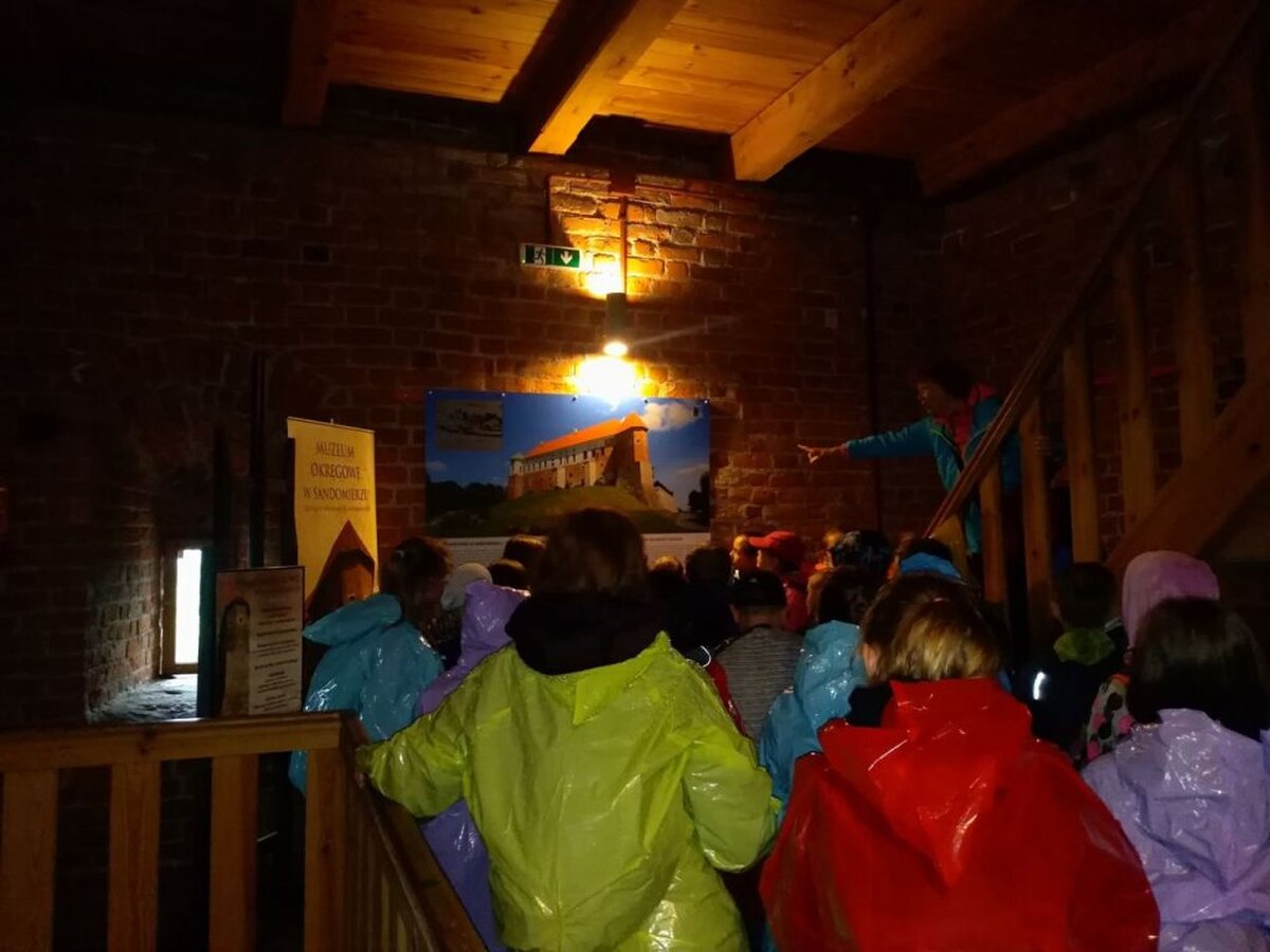 W środę 16 maja uczniowie klasy 4b i 4d wraz z wychowawczyniami i panem Michałem Czajką wyruszli na wycieczkę szkolną. Pierwszym punktem wyprawy był Zamek Krzyżtopór w Ujeździe. Na miejscu uczniowie mieli okazję obejrzeć ruiny zamku oraz posłuchać ciekawostek na jego temat. Kolejnym punktem wycieczki był Sandomierz, który przywitał zwiedzających deszczem. Nie przeszkodziło to jednak uczniom zobaczyć najważniejsze zabytki tego miasta: Rynek z zabytkową studnią, bramę Opatowską i Katedrę Narodzenia Najświętszej Maryi Panny. Następnie, dzieci zeszły pod płytę Rynku, do Podziemnej Trasy Turystycznej, która składa się z korytarzy i komór o różnych nazwach, na przykład: chodnik górniczy, korytarz straceńców, sala katowska, chodnik upadowy, komnata Haliny Krępianki, czy komora pod frontonem. Po zwiedzeniu sandomierskich podziemi przyszedł czas na pyszny sycący obiad i ostatni punkt wycieczki, czyli wizytę w Muzeum "Świat Ojca Mateusza". Tam uczniowie mogli zobaczyć pomieszczenia znane z serialu "Ojciec Mateusz": kościół, plebanię, komisariat i gabinet biskupa. W każdym z nich czekała na zwiedzających figura woskowa, przedstawiająca postaci z serialu: gospodynię Natalię, policjantów: Oresta Możejkę i Mieczysława Nocula oraz tytułowego księdza Mateusza. Po wykonaniu pamiątkowych fotografii, uczniowie wyruszyli w drogę powrotną do Rzeszowa. W autokarze długo jeszcze było słychać rozmowy dzieci, które pełne emocji wspominały wycieczkę.