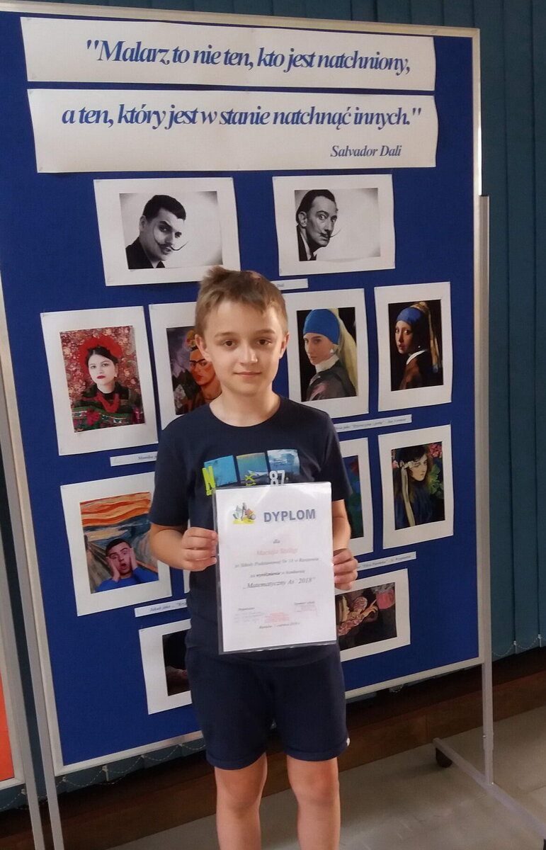 Miło nam poinformować, że Maciej Szeliga, uczeń klasy 5b, otrzymał wyróżnienie w Międzyszkolnym Konkursie „Matematyczny AS”, organizowanym przez Społeczną Szkołę Podstawową nr 2 im. św. Franciszka z Asyżu w Rzeszowie. W finale konkursu, który odbył się 12 maja 2018r. wzięło udział czterech uczniów naszej szkoły: