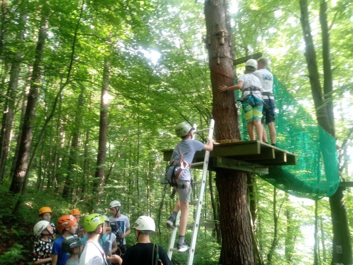 Naszą przygodę zaczęliśmy od zakwaterowania w ośrodku „Modrzew”, a następnie udaliśmy się na zjazd tyrolką nad jeziorem Solińskim. Po kolacji rozpoczęliśmy gry i zabawy na świeżym powietrzu, które trwały aż do samego wieczora.