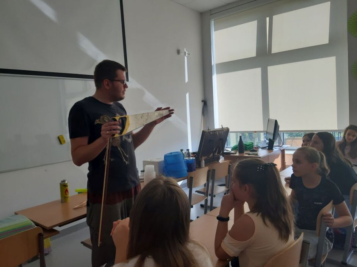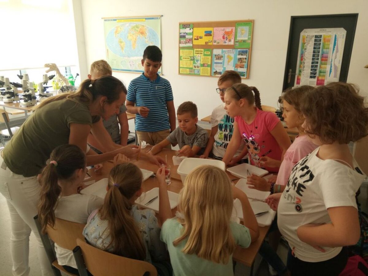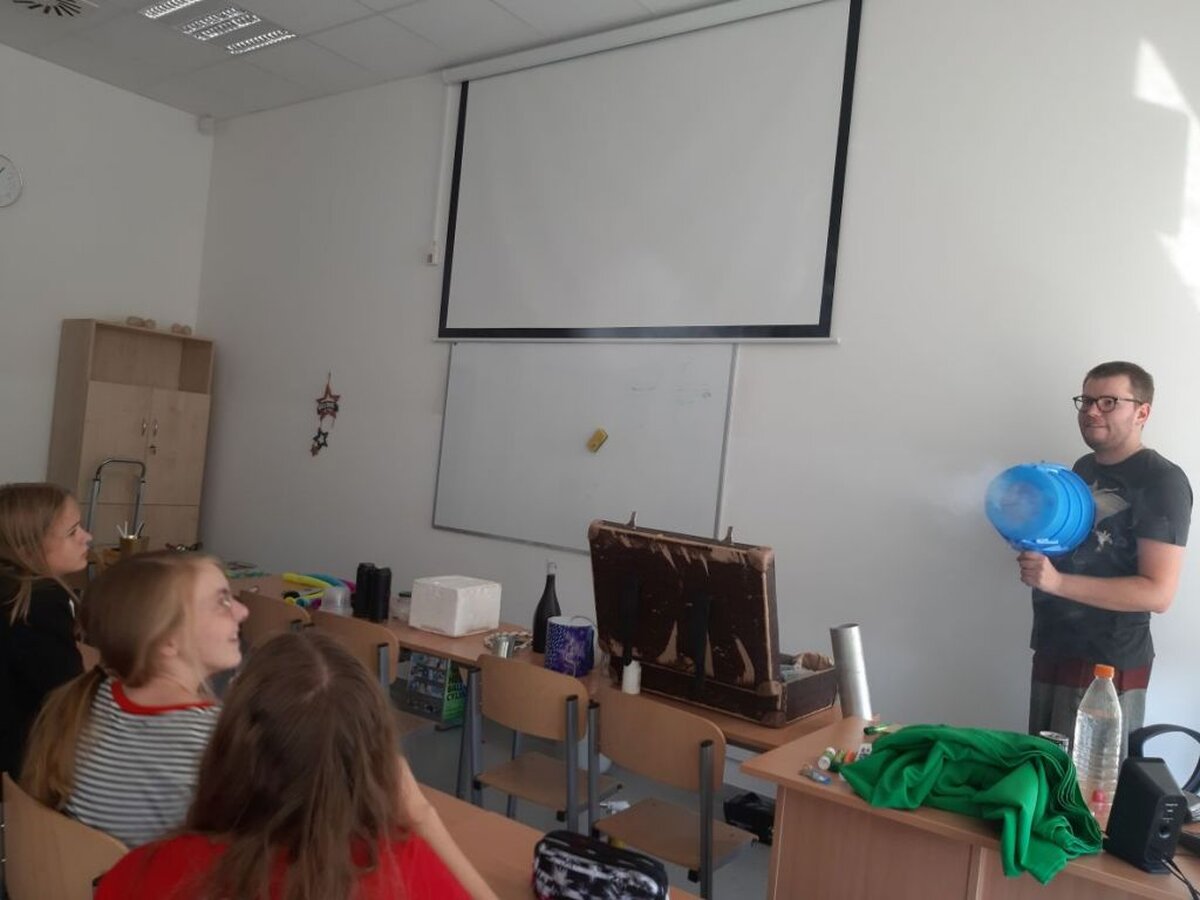 Podczas pierwszych warsztatów uczniowie kl. 7 i 8 „zobaczyli” dźwięk, znikającą butelkę, efekt działania helu. Ponadto mierzyli poziom hałasu, odkrywali sekrety prądu elektrycznego, oddziaływań elektrostatycznych i zjawisk magnetycznych. Młodsi odkrywcy samodzielnie tworzyli preparaty mikroskopowe z moczarki kanadyjskiej oraz poznawali różne techniki mikroskopowe.
