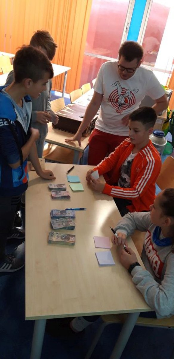 Uczniowie klas 6-8 wzięli udział w grze pn. „Gdzie jest mogiła?" - wspólna praca całego zespołu polegała na tym, że na podstawie informacji otrzymanych w spadku po przodkach i starej mapie mieli odnaleźć mogiłę powstańca styczniowego. Wspólna analiza posiadanych informacji i dyskusja, odrzucanie niektórych danych pozwoliły na odnalezienie miejsca spoczynku ostatniego powstańca z 1863 roku. Następnie uczniowie wzięli udział w grze pn. „Giełdomania” - uczniowie byli maklerami i inwestorami, kupowali i sprzedawali akcje na giełdzie papierów wartościowych, przewidywali prognozy giełdowe. Wszystkie zespoły zakończyły grę z zyskiem finansowym.