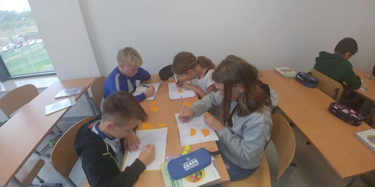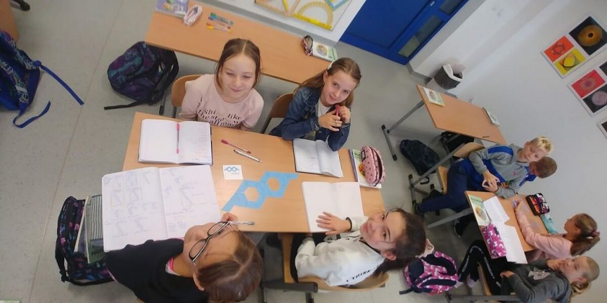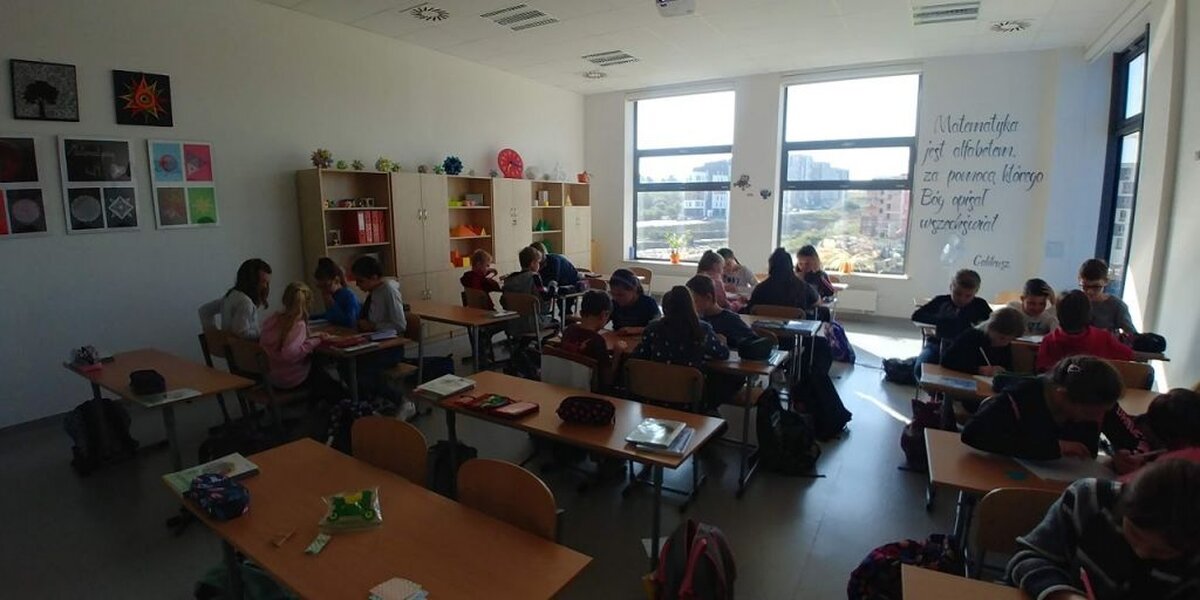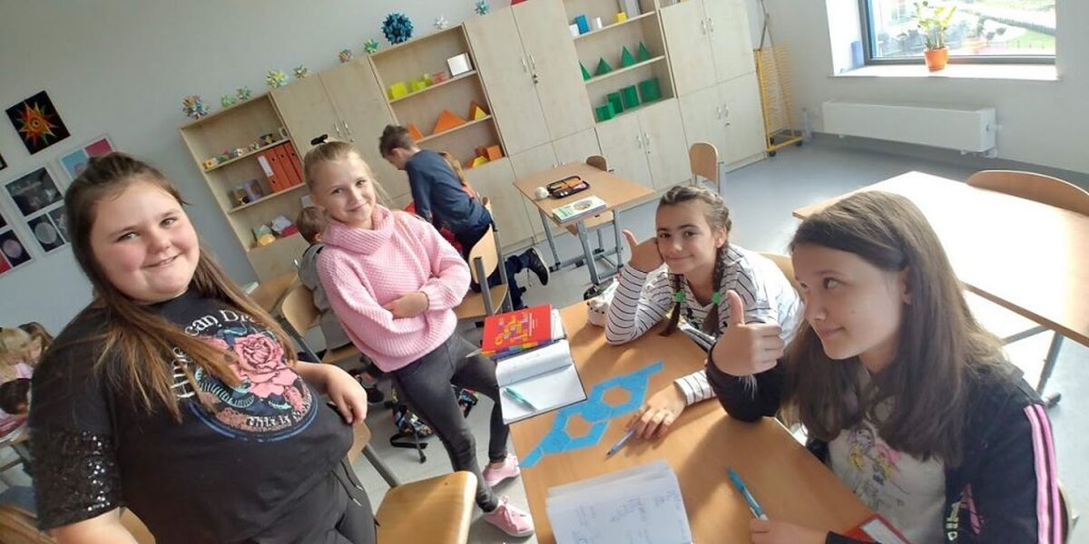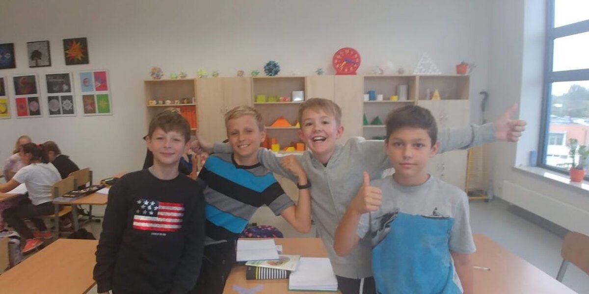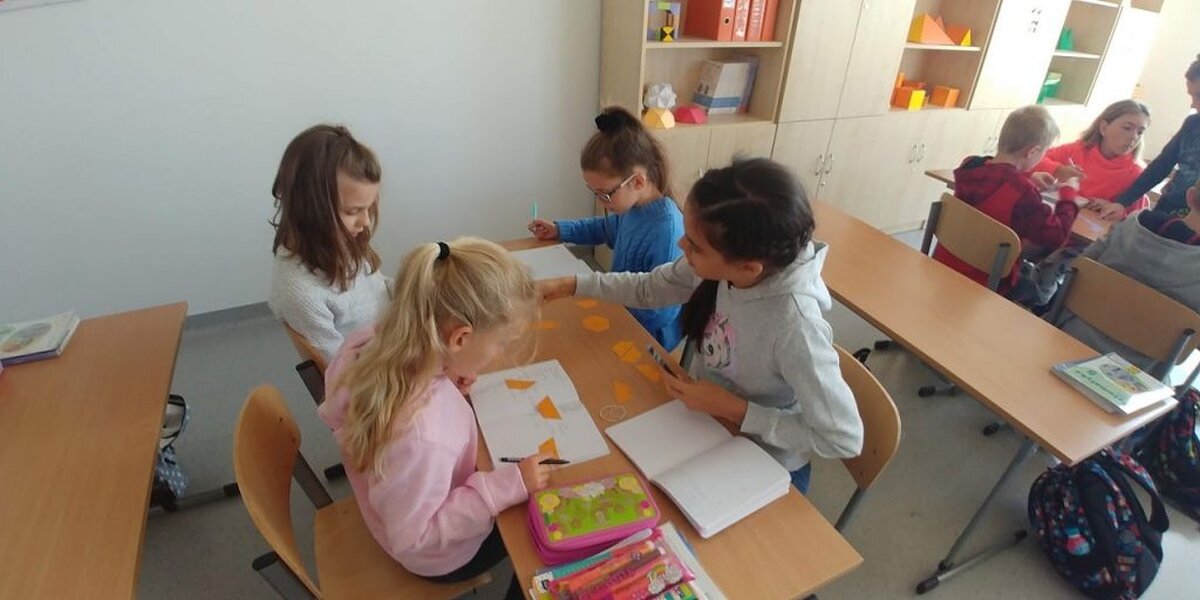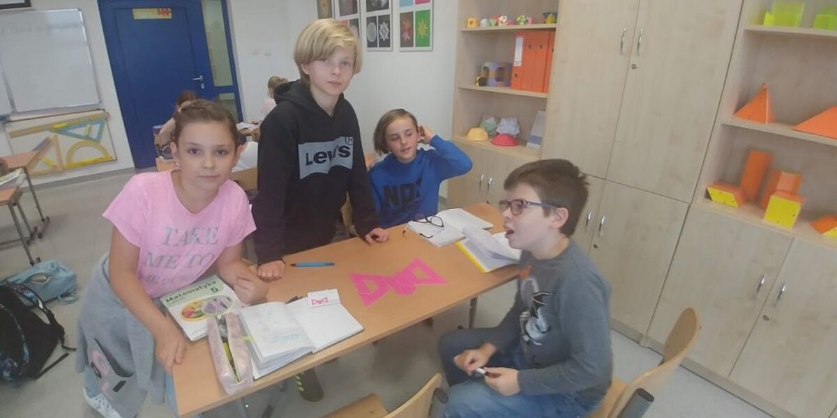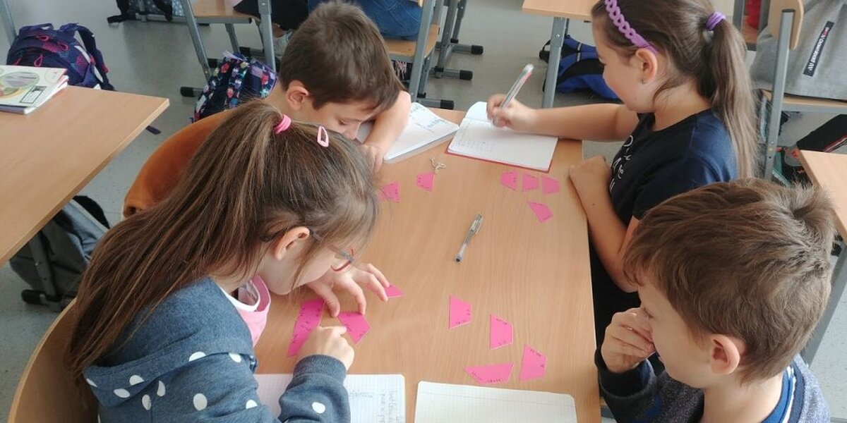 Od wieków wiadomo, że zmuszanie dziecka do nauki poprzez rozwiązywanie wielu przykładów w zeszycie jest mało efektywne i nieciekawe. Natomiast, jeżeli dziecko robi coś co lubi i jednocześnie uczy się, to ma to o wiele większe skutki. Dlatego uczniowie klasy 5a, 5c i 5e przekonali się, że naukę matematyki można połączyć z zabawą. W grupach 4 osobowych układali domino matematyczne, którego plansze miały kształt trapezów równoramiennych. Dzięki grze uczniowie lepiej wyćwiczyli umiejętność wykonywania czterech działań na liczbach, która w życiu codziennym jest niezbędna. Podczas układania domina ciekawość poznawcza uczniów była bardzo duża, każda drużyna chciała jako pierwsza ułożyć swoje domino. Dodatkową atrakcją było, że każde domino po ułożeniu przedstawiało obraz i tak powstały okulary, pies, statek, żuk, koń, mucha, ślimak itd. Gry dydaktyczne podczas lekcji są bardzo przydatne i sprawiają, że nauka matematyki jest przyjemna.