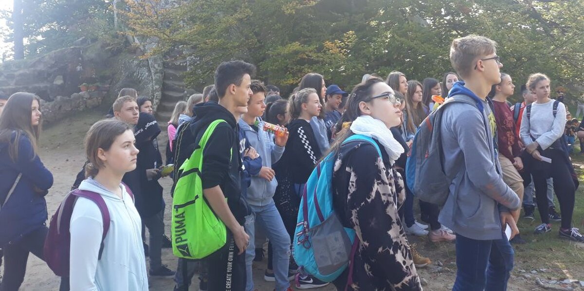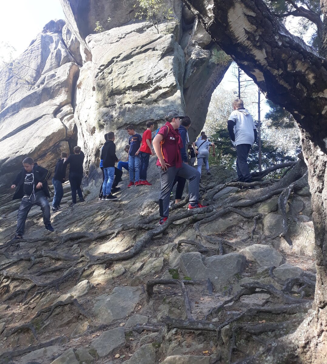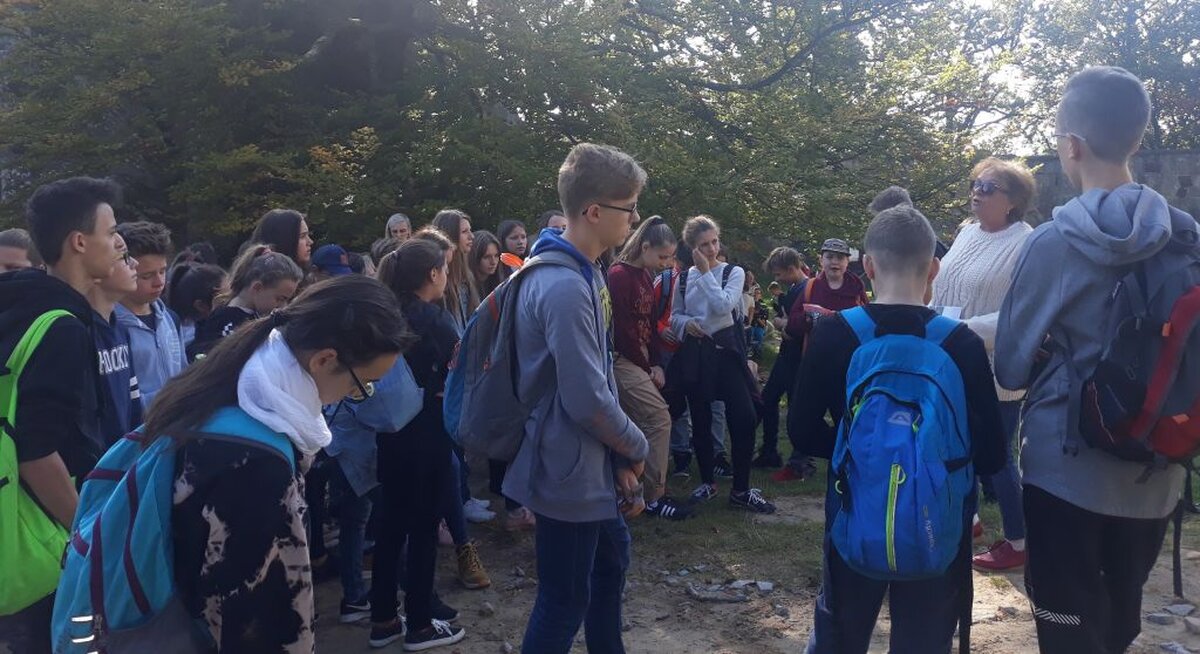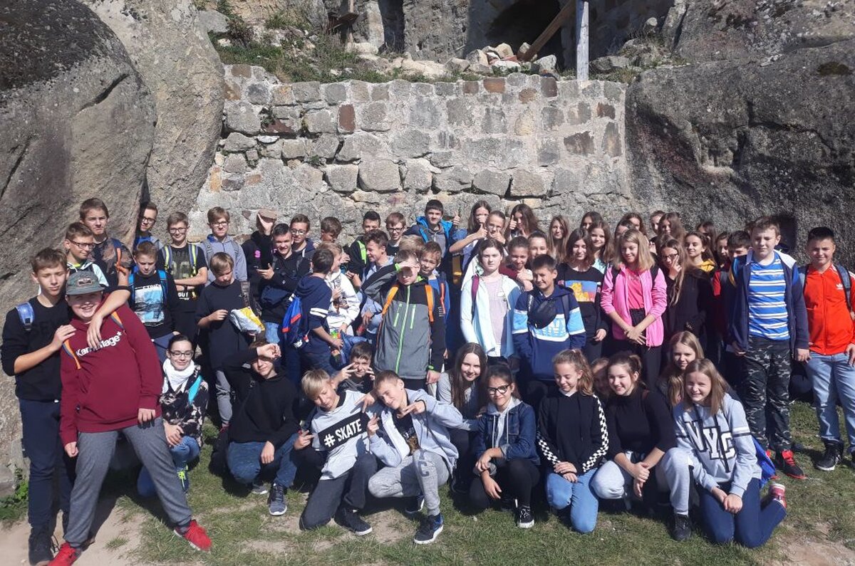 Uczniowie i wychowawcy klas 7 postanowili powitać jesień w plenerze i w dniu 27 września, zorganizowali wycieczkę integracyjną do Odrzykonia, Stępiny i Prządek. Pierwszym punktem wycieczki był zamek w Kamieńcu, gdzie uczniowie poznali historię skłóconych rodów Firlejów i Skotnickich z komedii „Zemsta” Aleksandra Fredry. Drugim przystankiem był rezerwat skalny w Prządkach, gdzie mogliśmy podziwiać małe cuda natury w postaci widokowych skałek. Zanim zrelaksowaliśmy się przy ognisku i poczęstunku, zwiedziliśmy tunel schronowy w Stępinie. Pogoda i humor dopisywały. Aż szkoda było wracać w mury szkolne.