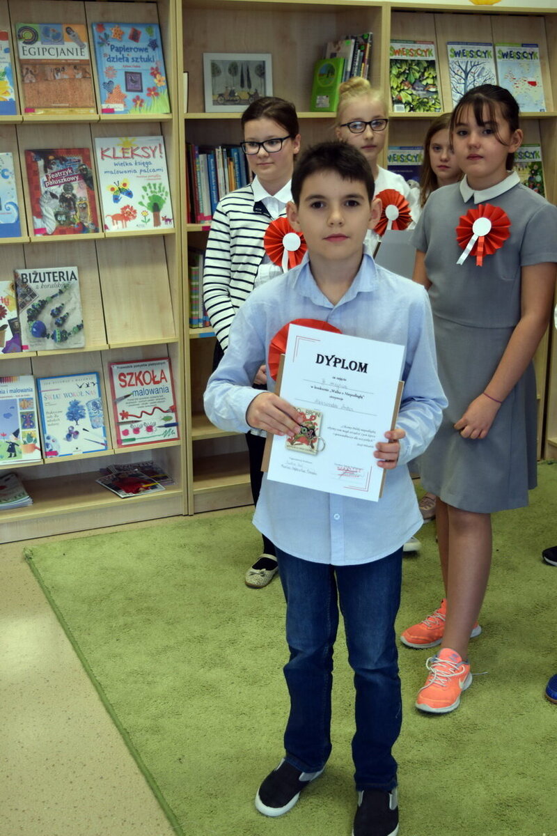 a III miejsce Aleksander Antos z klasy 5b. Wśród osób wyróżnionych znaleźli się ponadto: Ewelina Najda z klasy 5a, Sebastian Osiadacz z klasy 5a, Tymon Błochowiak z klasy 5a,