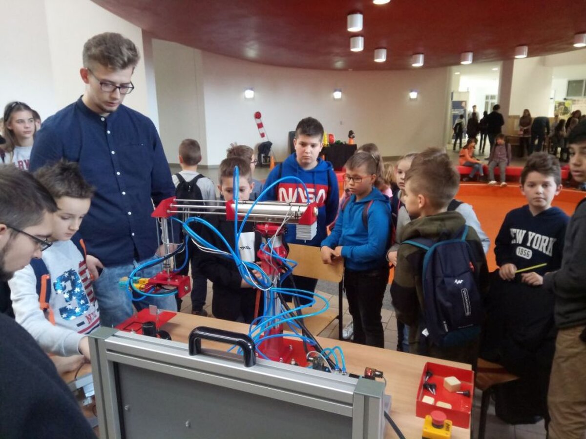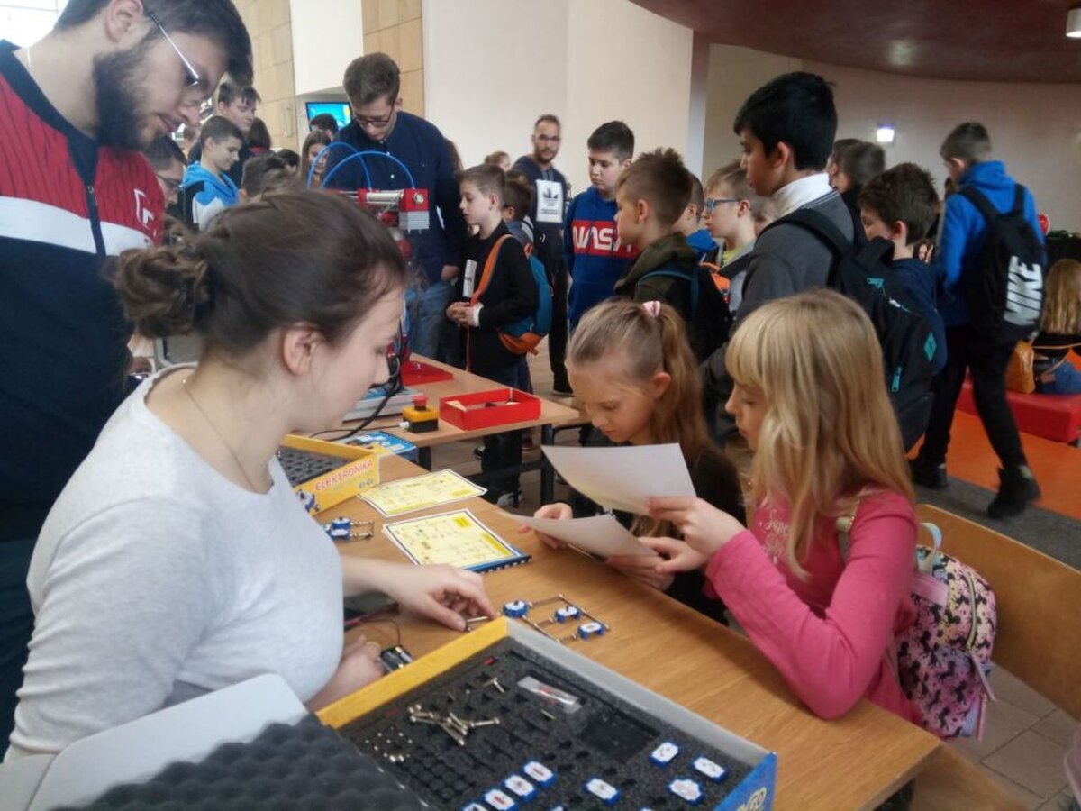 Po wykładzie uczniowie mieli okazje indywidualnie podchodzić do stoisk przygotowanych m.in. przez Studenckie Koła Naukowe, aby móc samodzielnie doświadczać i eksperymentować poprzez zabawę.