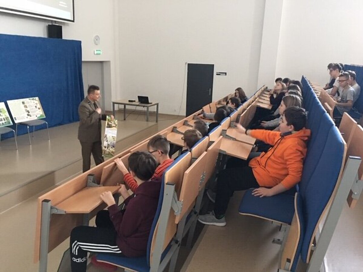 12 grudnia odbyło się w naszej szkole spotkanie uczniów klas siódmych z leśnikiem, Panem Dariuszem Żurkiem z Nadleśnictwa Kańczuga. Celem spotkania było przybliżenie uczniom wiedzy o polskich lasach, a także ich dużego znaczenia gospodarczego, społecznego i przyrodniczego.