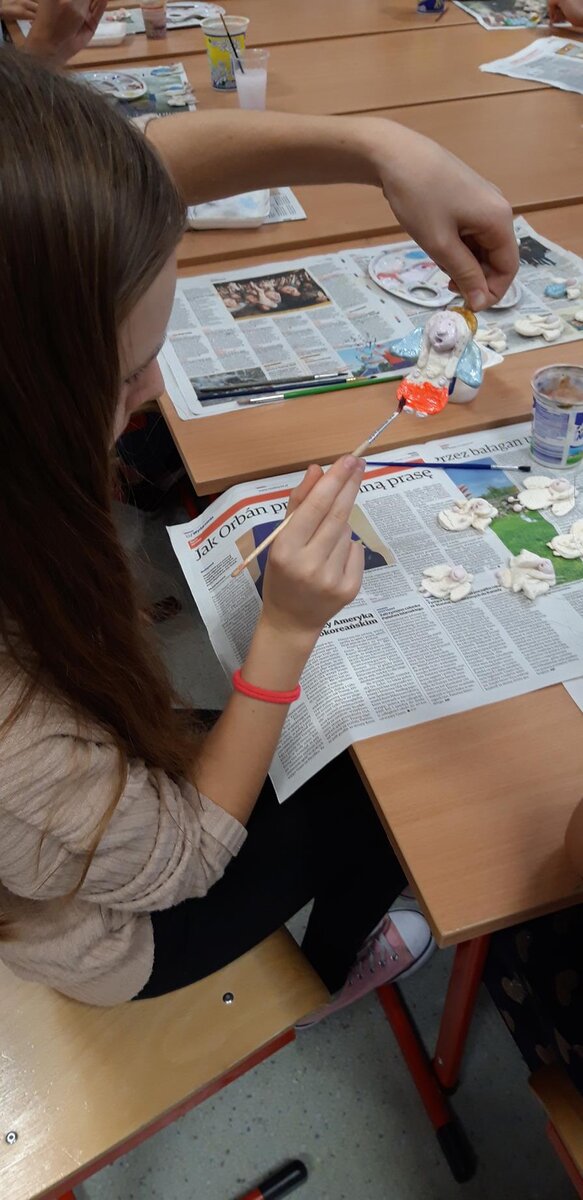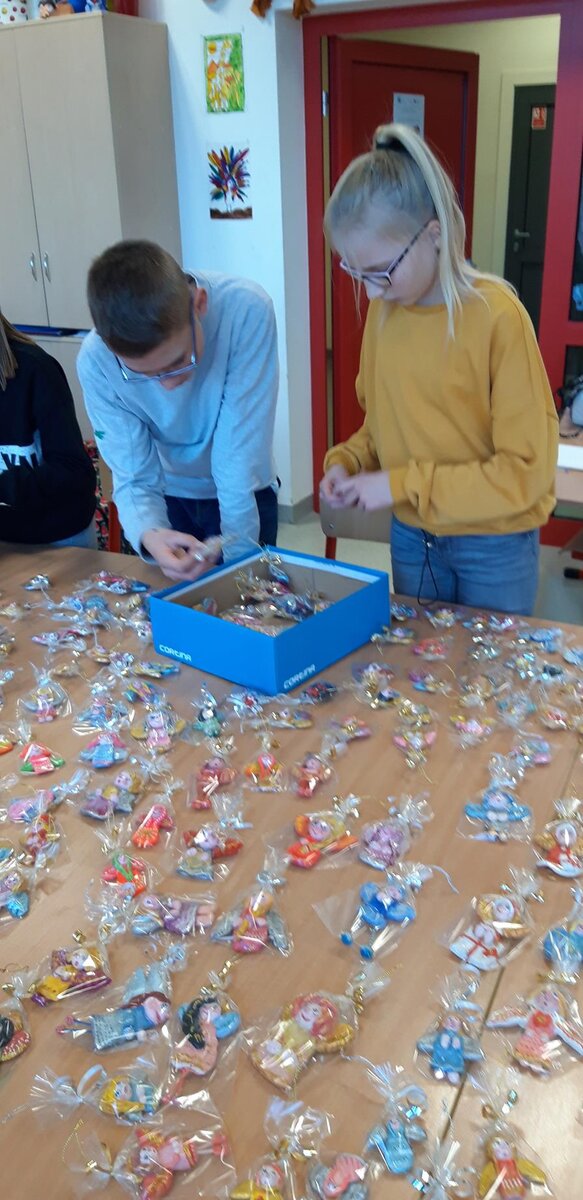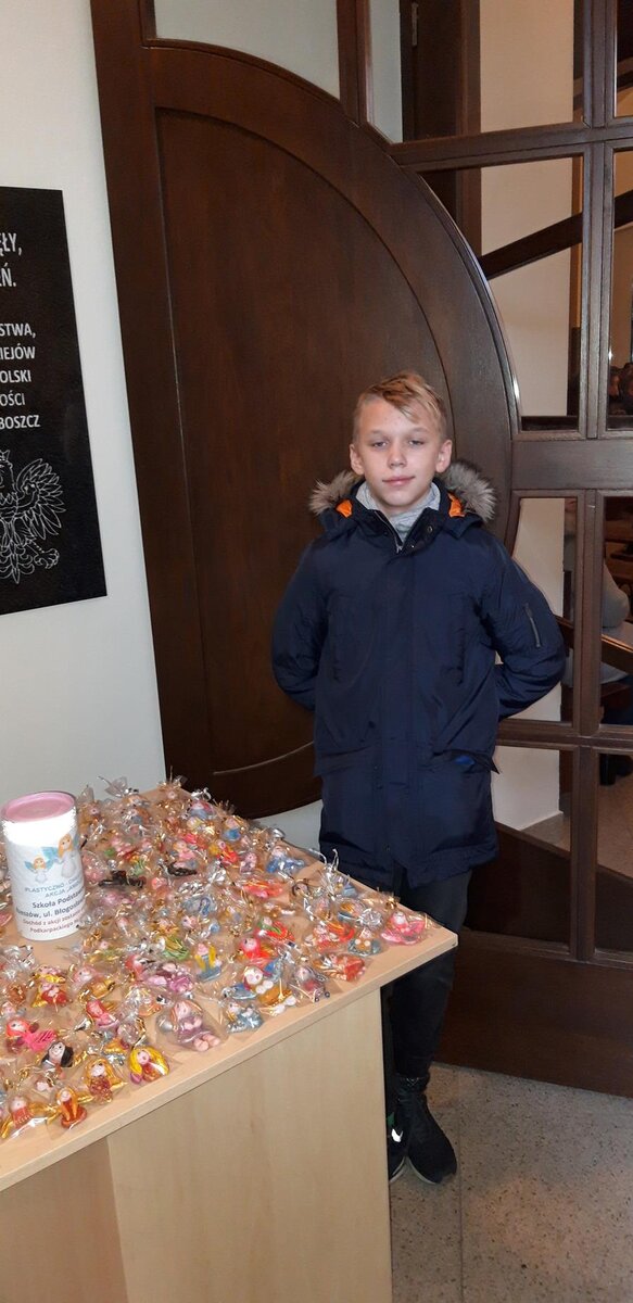 Plastyczno – charytatywna akcja „Aniołek” to już tradycja naszej szkoły. Kolejna edycja tej akcji ruszyła w październiku 2019 roku. Wzięło w niej udział ponad dwudziestu uczniów, którym los innych nie jest obojętny, i którzy lubią spędzać wolny czas na zajęciach plastycznych. W efekcie ich pracy powstało ok. 300 przepięknej urody aniołków. Finałem akcji był kiermasz bożonarodzeniowy, który odbył się 15 grudnia w kościele p.w. Błogosławionej Karoliny. Serdeczność i hojność ludzi wspierających nasze działania była ogromna! Bardzo dziękujemy wszystkim, którzy dołączyli do naszej chęci wspomożenia Podkarpackiego Hospicjum dla Dzieci. Pomysłodawczyni i organizatorka akcji, pani Ela Ficek gorąco dziękuje wszystkim uczestnikom zajęć pozalekcyjnych, którzy tak pięknie pracowali tworząc świąteczne, choinkowe cuda a także paniom Agnieszce Chorzępie – Dutce i Agnieszce Lasek, które bardzo pomogły w zorganizowaniu kiermaszu.
