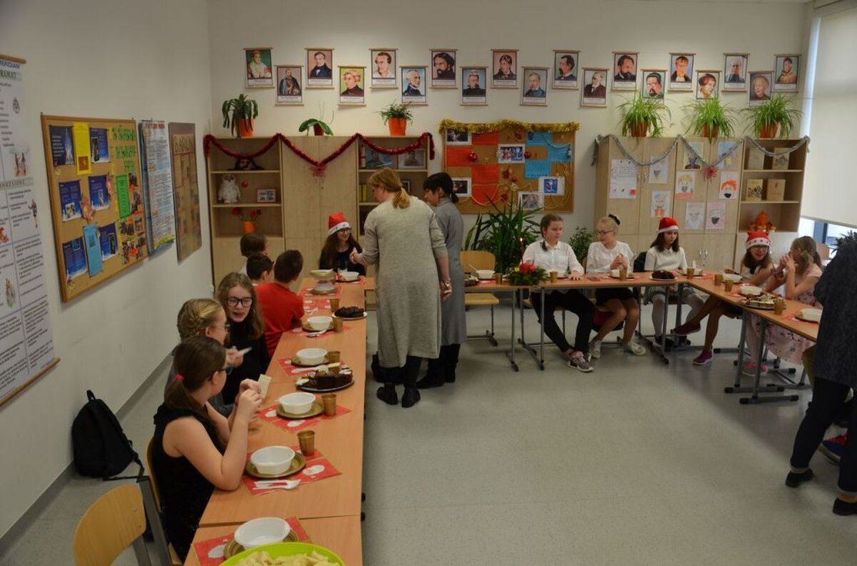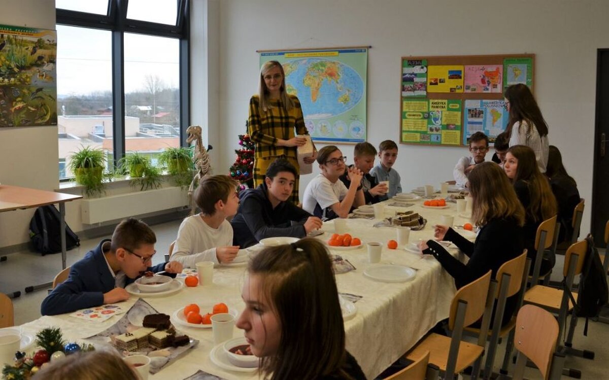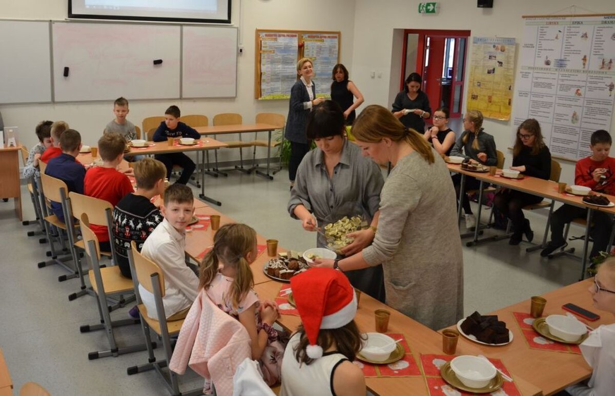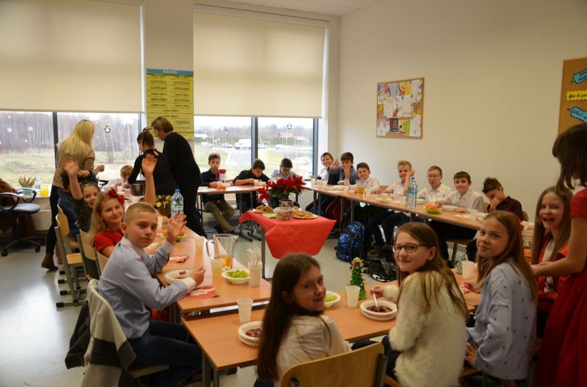 Przygotowania do świąt w naszej szkole rozpoczęły się już na długo przed ich nadejściem. Najpierw odbyły się warsztaty, podczas których całe rodziny wykonywały wspólnie świąteczne ozdoby, następnie powstawały przepiękne dekoracje w naszym szkolnym holu. W nastrój świąt weszliśmy wzruszającym koncertem w wykonaniu szkolnego chóru, aż wreszcie rozpoczął się czas szkolnych wigilii. To piękny czas składania sobie życzeń i dzielenia się opłatkiem. To czas, gdy nikną spory, robi się tak cieplej koło serca i świat wokół nas staje się piękniejszy. To co wydarzyło się w naszej szkole, już kolejny raz, bardzo zbliża i jednoczy naszą szkolną rodzinę. Z takimi przeżyciami mogliśmy się rozejść na dalsze świętowanie – już w domach rodzinnych.