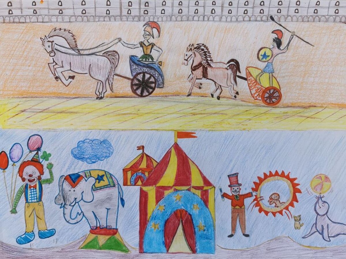 Klasy 5 podróżowały ostatnio na plastyce do Rzymu. Ale spokojnie! Po pierwsze wirtualnie, po drugie do starożytnego Rzymu. Zaciekawiło nas to, że starożytny cyrk to zupełnie co innego niż cyrk współczesny. Jakie są te różnice? Zobaczcie na pięknych pracach…