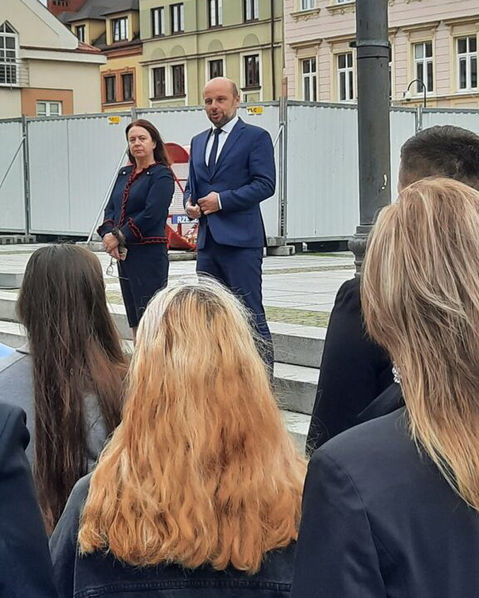 W dniu 1 września, reprezentacja uczniów klasy 8b wraz z wychowawczynią, wzięła udział w krótkim spotkaniu inaugurującym nowy rok szkolny 2021/2022, na rzeszowskim Rynku. Na spotkaniu obecni byli prezydent miasta pan Konrad Fijołek oraz wiceprezydent, pani Krystyna Stachowska. Złożyli oni zebranym życzenia z okazji rozpoczęcia nowego roku szkolnego oraz podarowali szkole flagę Rzeszowa. Na koniec wykonano pamiątkowe zdjęcie z panem prezydentem.