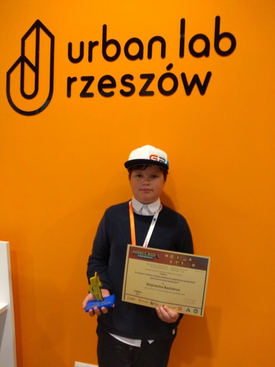 12 uczniów z kilku rzeszowskich szkół reprezentowało Rzeszów w ogólnopolskim konkursie na projektowanie przestrzeni miejskiej w Minecraft i druku 3D. Zostali wyłonieni podczas eliminacji miejskich – w konkursie na projekt miejsca dla pszczół. Pomysłodawcą konkursu był Urban Lab Rzeszów, a odbywał się on we współpracy z Unią Metropolii Polskich. Do rywalizacji stanęły drużyny z 12 polskich miast. Rzeszów reprezentowały dwa zespoły w tym nasz uczeń klasy 6 - Wojciech Bachórz. Zadaniem drużyn było zaplanowanie i zaprojektowanie sportowych terenów rekreacyjnych w swojej okolicy. W projekcie miał być uwzględniony charakterystyczny symbol dla danego miasta.