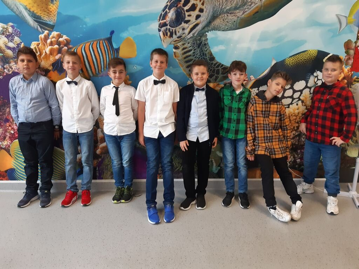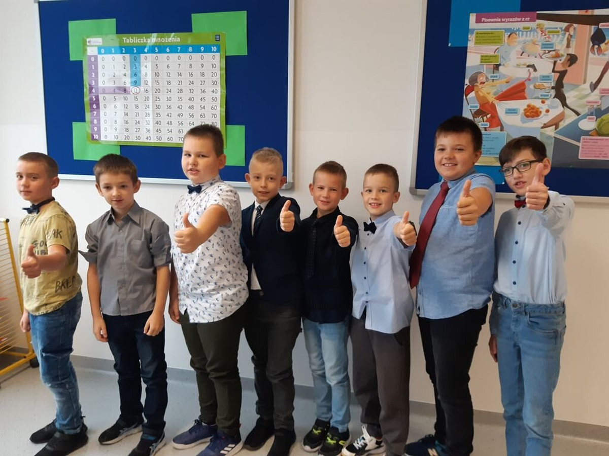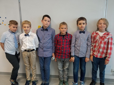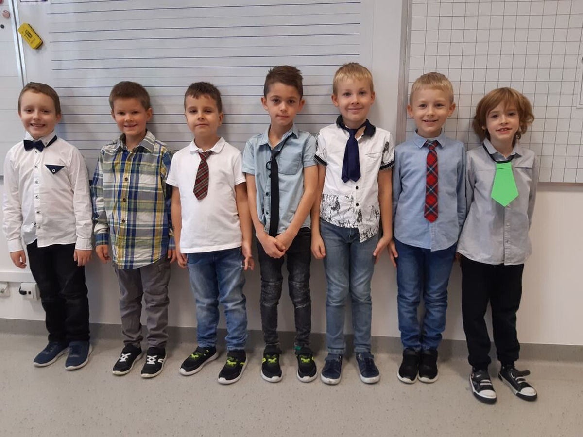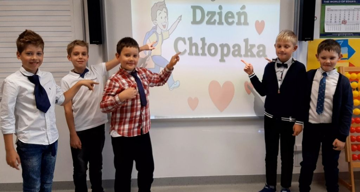 Dzień Chłopaka w szkole obchodziliśmy i przystojniaków podziwialiśmy, w koszule, krawaty i muchy przyszli ubrani, bo bardzo chcieli nie być pytani. Marzenia ich spełniliśmy i od pytania uwolniliśmy, a młodszym naszym dżentelmenom pochwałę w dziennik wpisaliśmy.