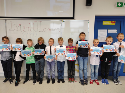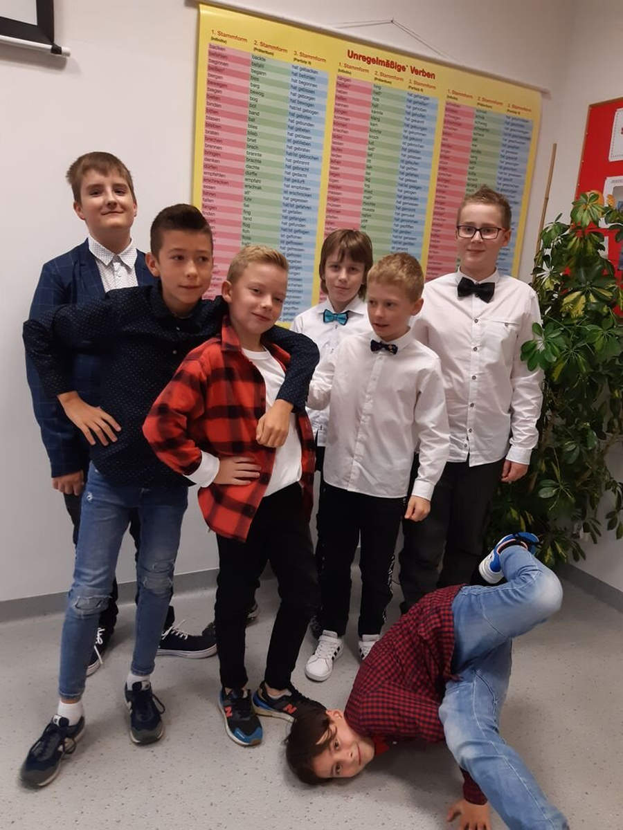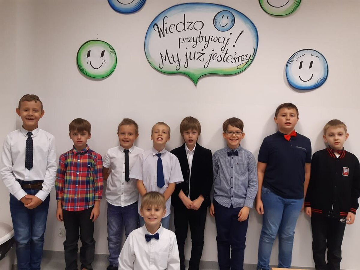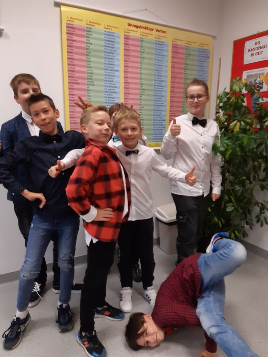 Dzień Chłopaka w szkole obchodziliśmy i przystojniaków podziwialiśmy, w koszule, krawaty i muchy przyszli ubrani, bo bardzo chcieli nie być pytani. Marzenia ich spełniliśmy i od pytania uwolniliśmy, a młodszym naszym dżentelmenom pochwałę w dziennik wpisaliśmy.