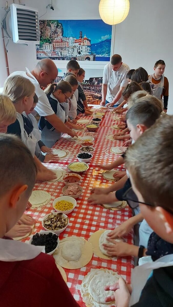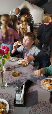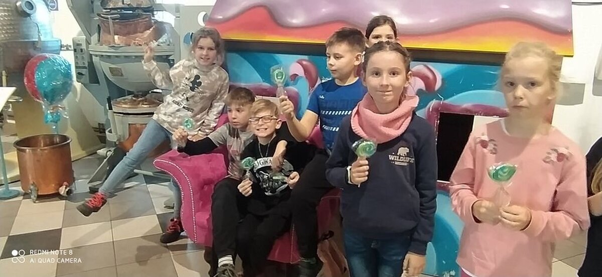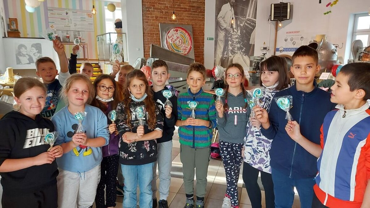 12 października klasy 4 D i F były na wycieczce integracyjnej "W krainie lizaka". W programie wyjazdu było wiele atrakcji. Pierwszą była wizyta w Muzeum Przyrodniczym im. Krystyny i Włodzimierza Tomków w Ciężkowicach. Tam uczniowie poznali wspaniałe gatunki zwierząt żyjących w polskich lasach, a interaktywna podłoga pomogła rozróżnić gatunki roślin na łące. Kolejnym przystankiem była wizyta w Muzeum Lizaka w Jaśle, gdzie dzieci dowiedziały się jak powstają lizaki, skąd biorą się poszczególne smaki i aromaty. Sami własnoręcznie stworzyli swojego wymarzonego lizaka. Następnie udaliśmy się na warsztaty robienia pizzy. Tu uczniowie dowiedzieli się skąd pochodzi ten przysmak oraz jak samemu przygotować prawdziwie włoską pizzę. Mając już taką wiedzę każdy stworzył własna pizzę by po upieczeniu ją zjeść. Było przyrodniczo, słodko i smacznie.
