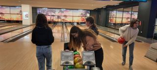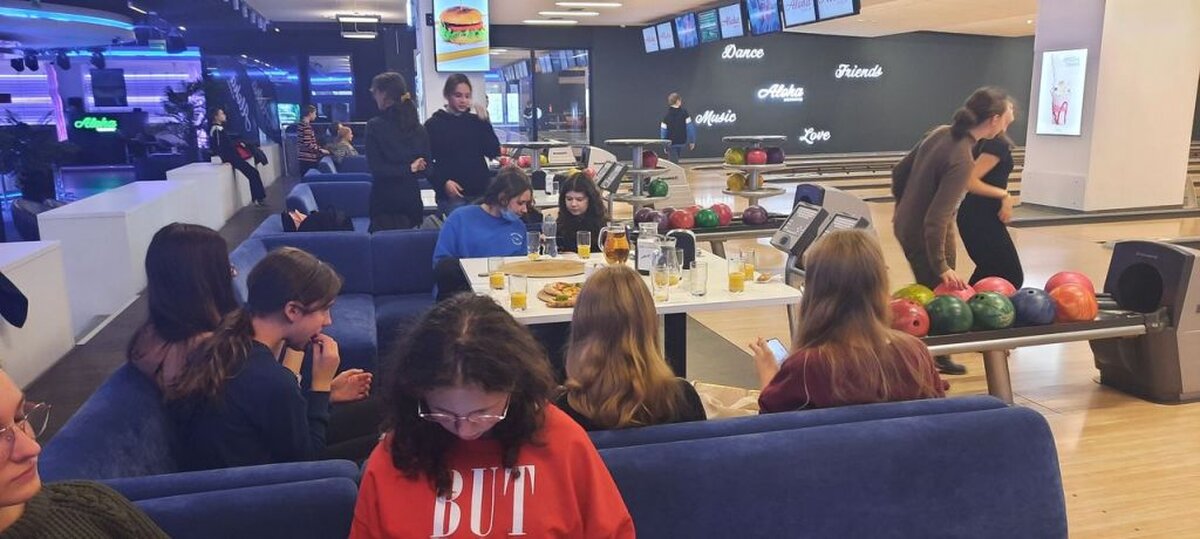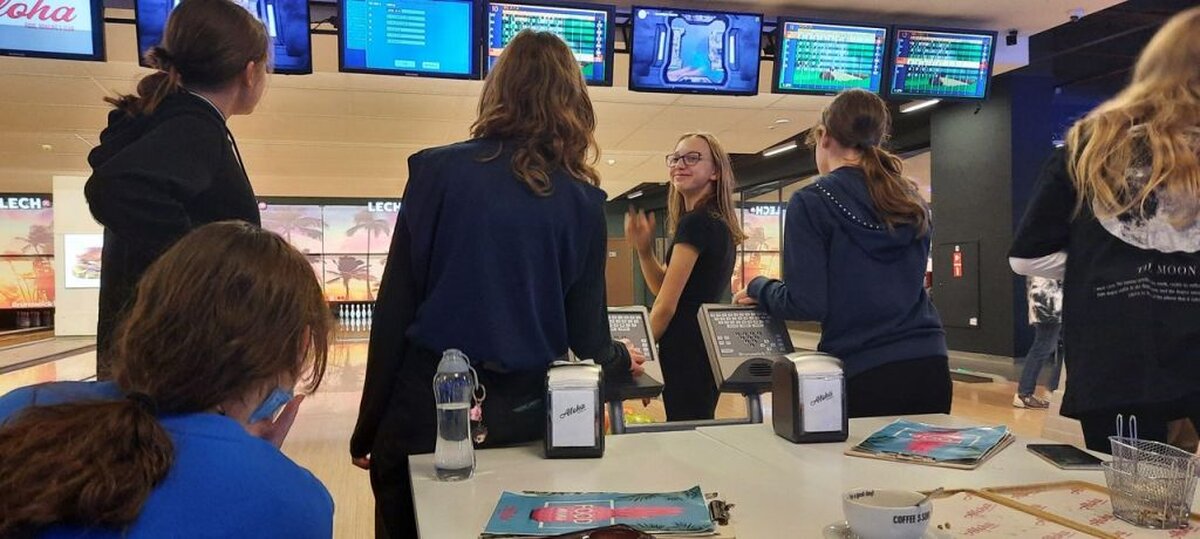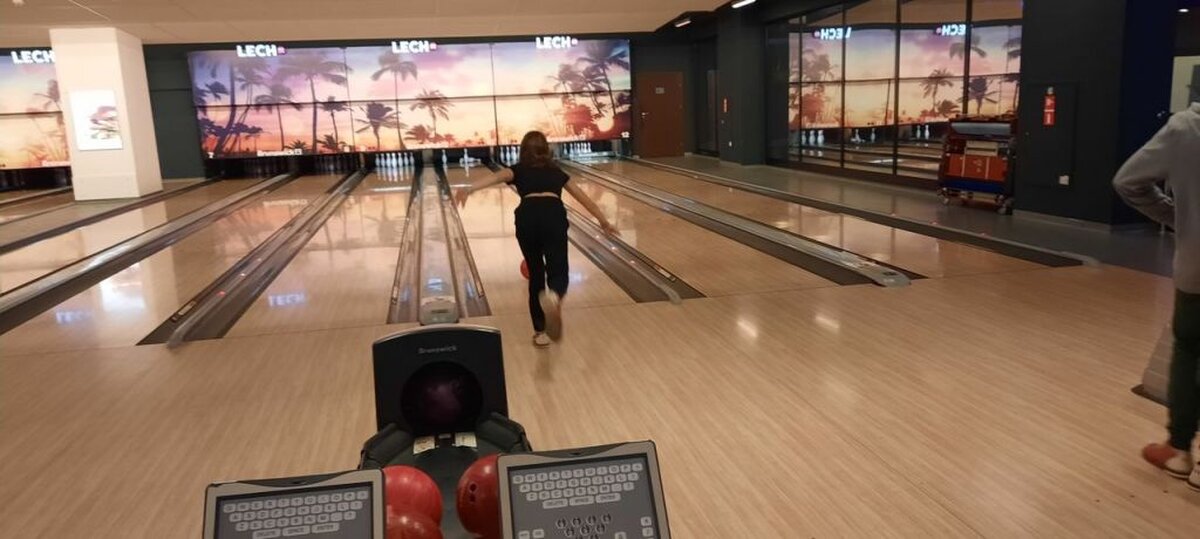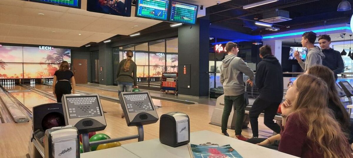 Uczestnicy wyjścia, podzieleni na zespoły, próbowali swych sił w grze w kręgle. Rozgrywki o tytuł najlepszego gracza dostarczyły ósmoklasistom wielu pozytywnych emocji i wywołały uśmiech na ich twarzach. Na koniec wspólnej zabawy, wszyscy zjedli pyszną pizzę i w dobrych humorach ruszyli w drogę powrotną do domu.