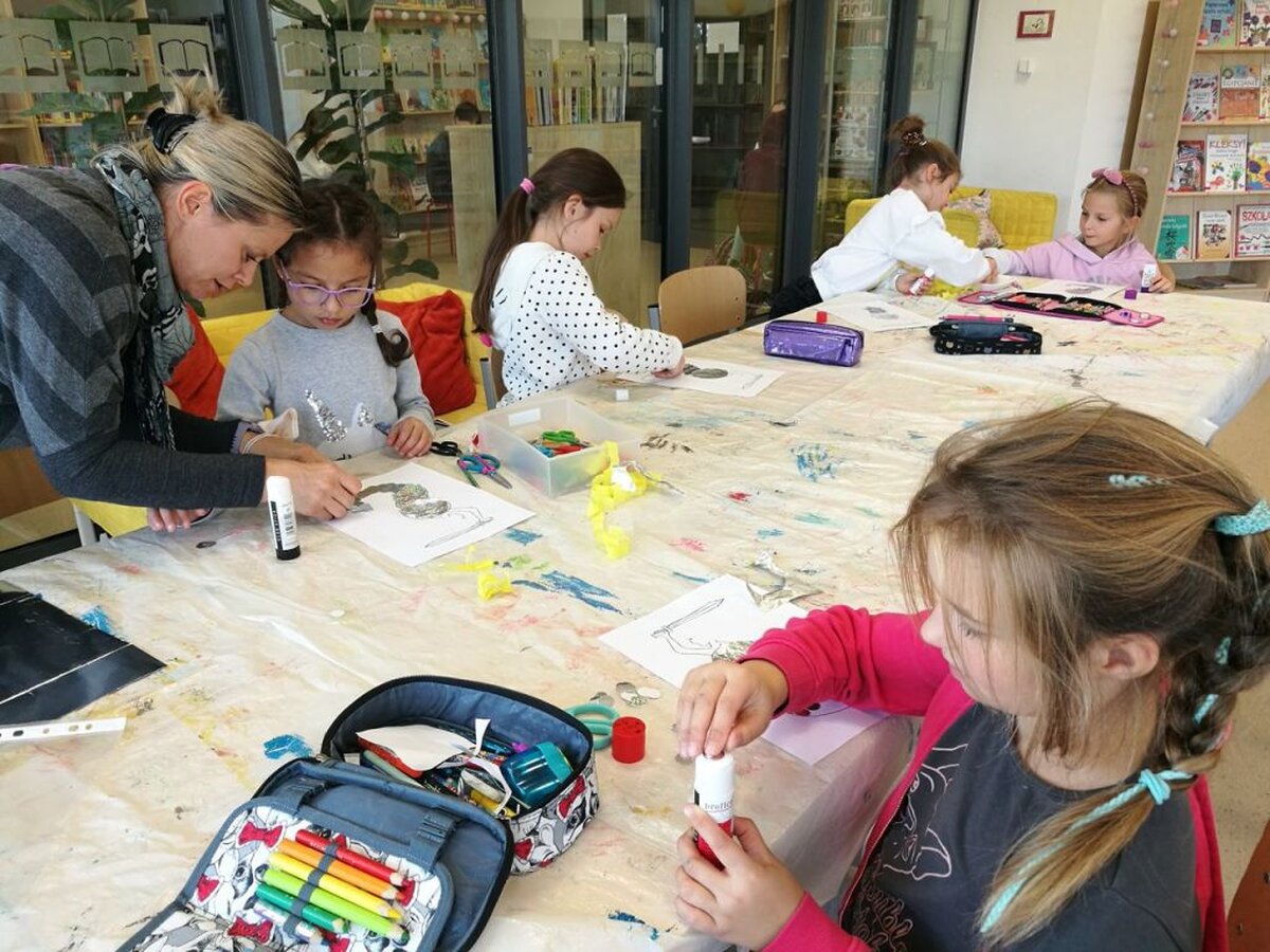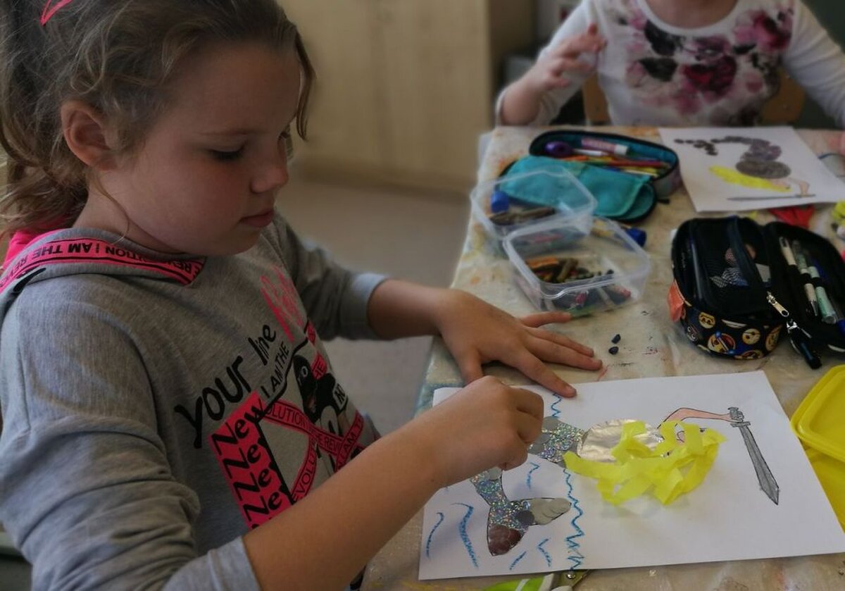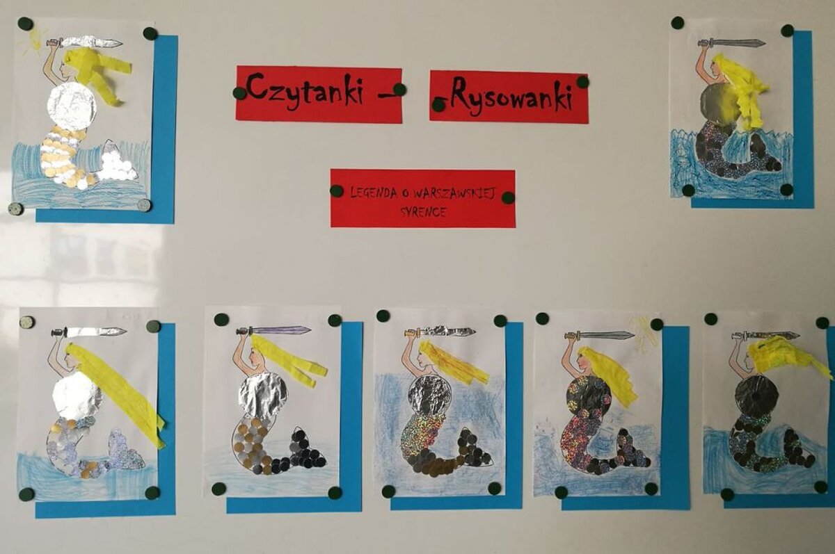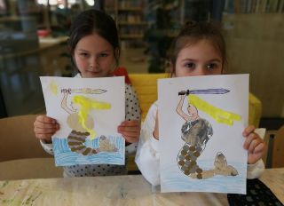W bibliotece w czasie zajęć czytelniczo-plastycznych były czytane legendy polskie i węgierskie, a uczniowie mieli okazję wykonać warszawską syrenkę.