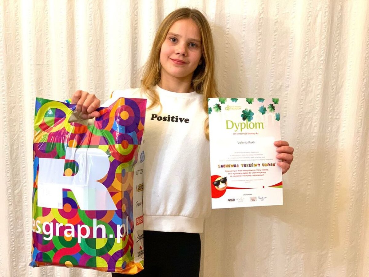Miło nam poinformować, że nasza uczennica Valeria Rukh z klasy 5d, otrzymała nagrodę wyróżnienia w konkursie literacko – plastycznym "Szczęśliwa chwila, szczęśliwy dzień, szczęśliwe życie" zorganizowanym w ramach ogólnopolskiej kampanii "Zachowaj Trzeźwy Umysł 2021".