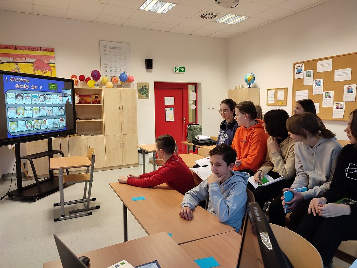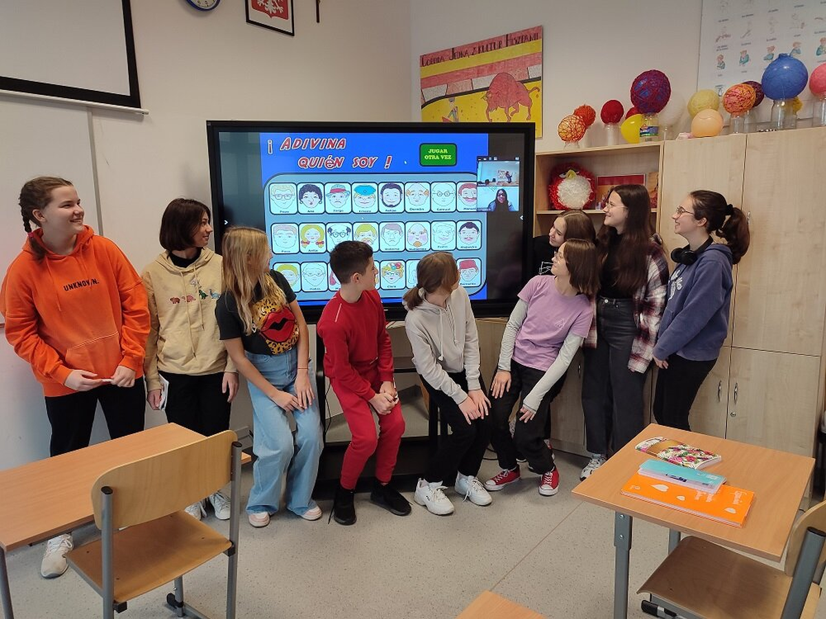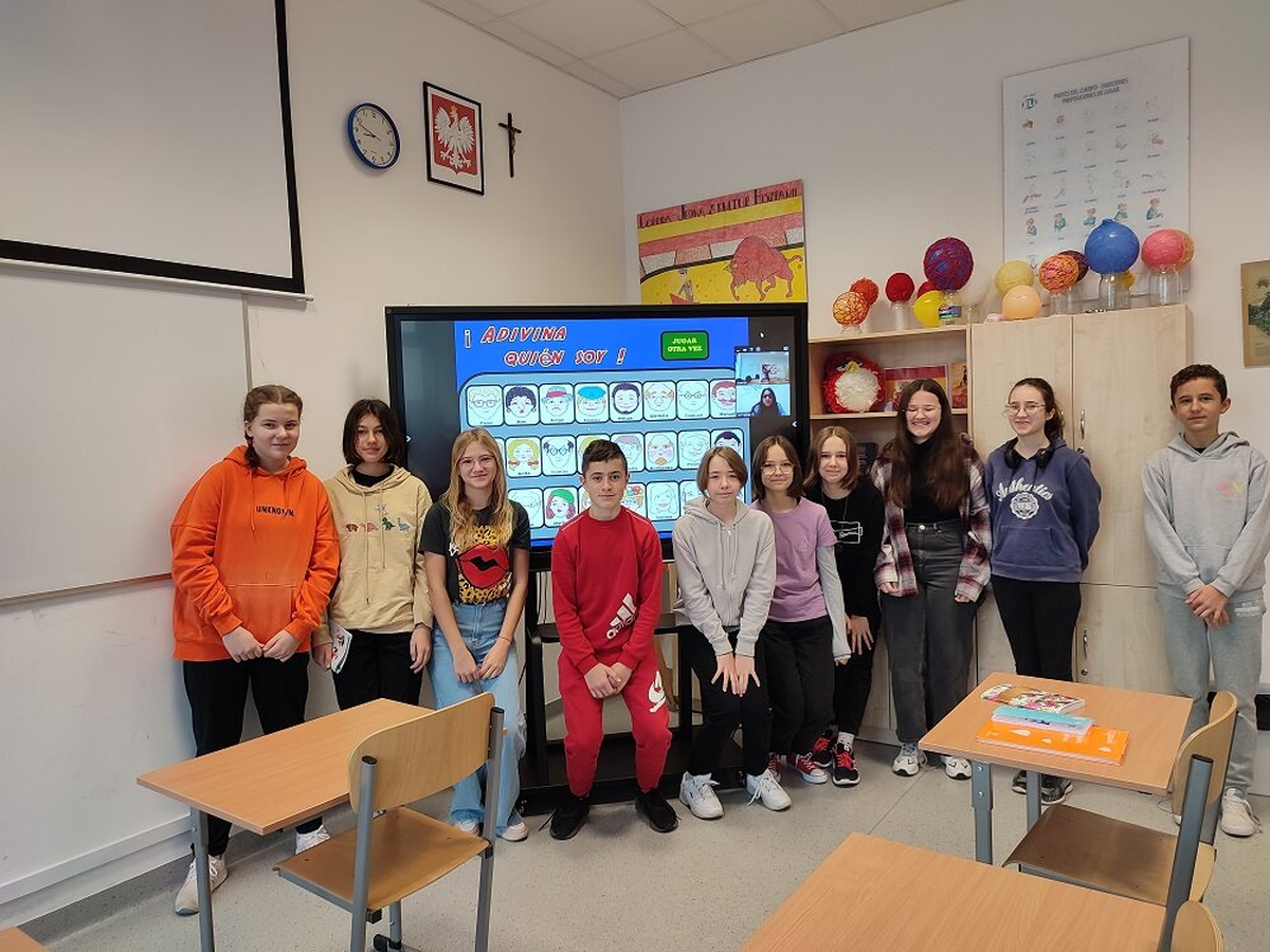 Tytuł warsztatu to "De juego a juego" - który umożliwia powtórzenie gramatyki za pośrednictwem gier. Uczniowie naszej szkoły ćwiczyli słownictwo oraz gramatykę związaną z opisywaniem osób i grali w zabawę "Quíen es quíen" w rożnych wariantach. Lekcja była angażująca dla naszych uczniów. Wszyscy przezwyciężyli strach przed mówieniem w języku hiszpańskim i odważnie zadawali pytania oraz udzielali odpowiedzi. Było to niezapomniane spotkanie pełne śmiechu.