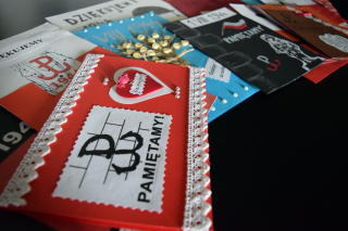Wzorem lat poprzednich kartki pocztowe stworzyli uczniowie z kilku klas. Na pocztówkach zapisali oni podziękowania za odwagę i patriotyzm oraz piękne życzenia. Nie zabrakło również słów podziwu dla uczestników walk w trakcie II wojny światowej. Symbolika była biało-czerwona. Pojawiały się elementy bezpośrednio związane z Polskim Państwem Podziemnym oraz powstaniem warszawskim.