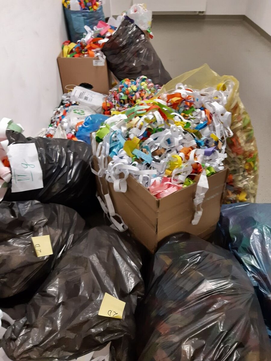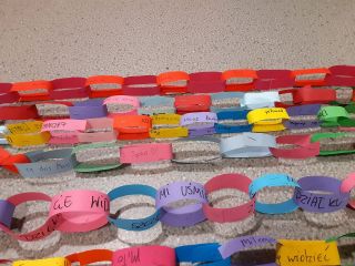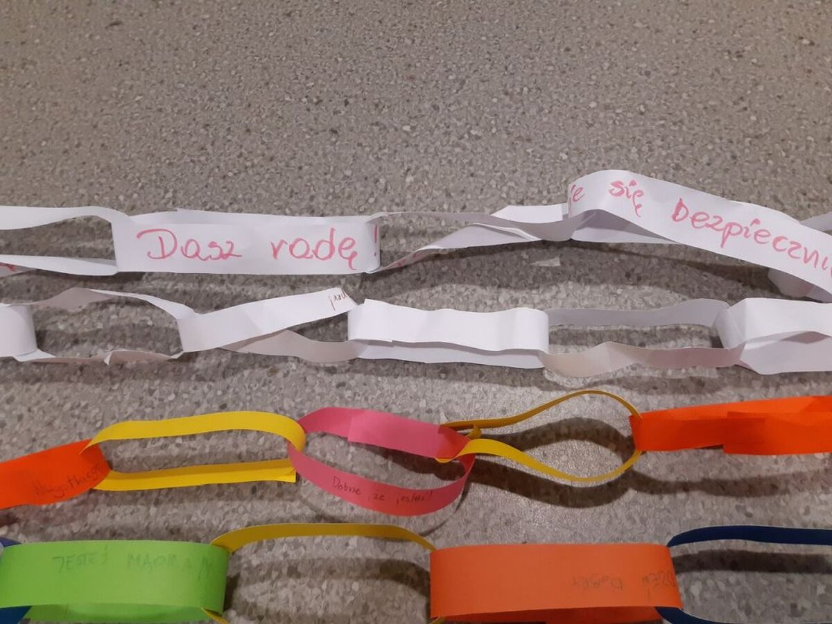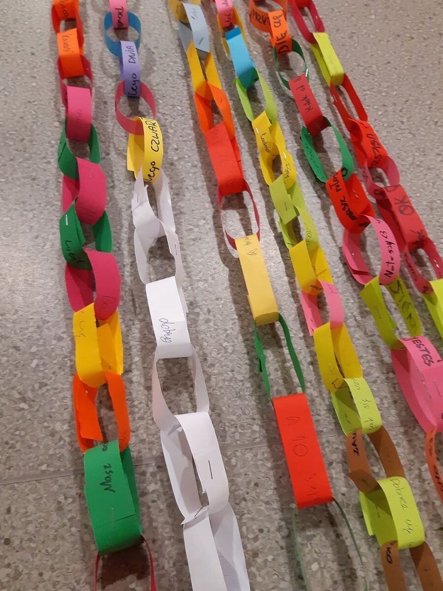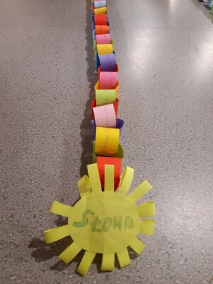 Kolejną akcją był "Łańcuch Życzliwości", polegał na wykonaniu przez poszczególne klasy najdłuższego łańcucha miłych słów i pozdrowień. Zgadnijcie, ile kilometrów łańcucha- tak, tak dobrze czytacie kilometrów wykonali nasi uczniowie?
