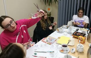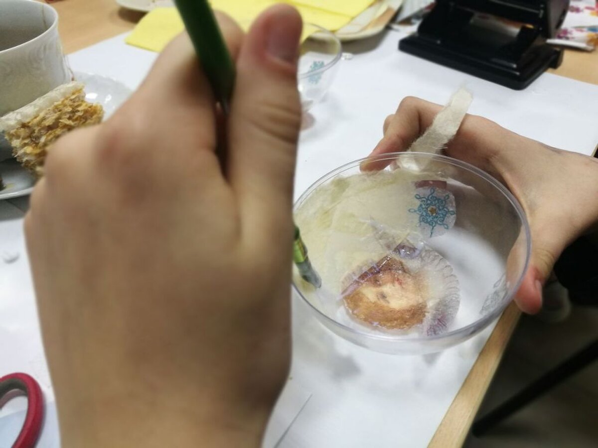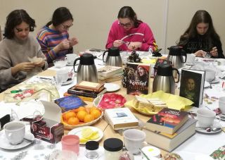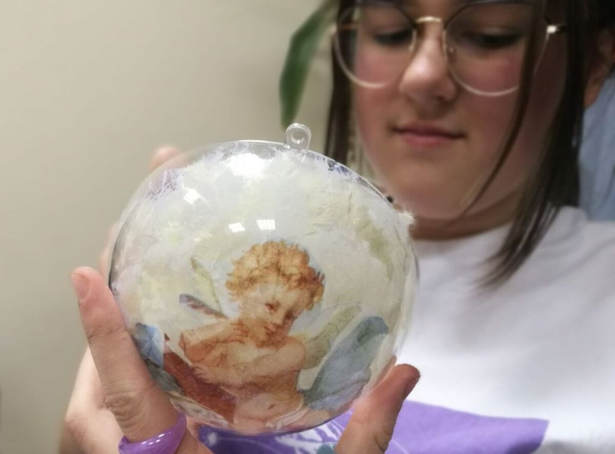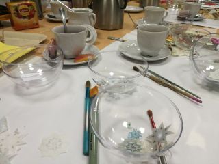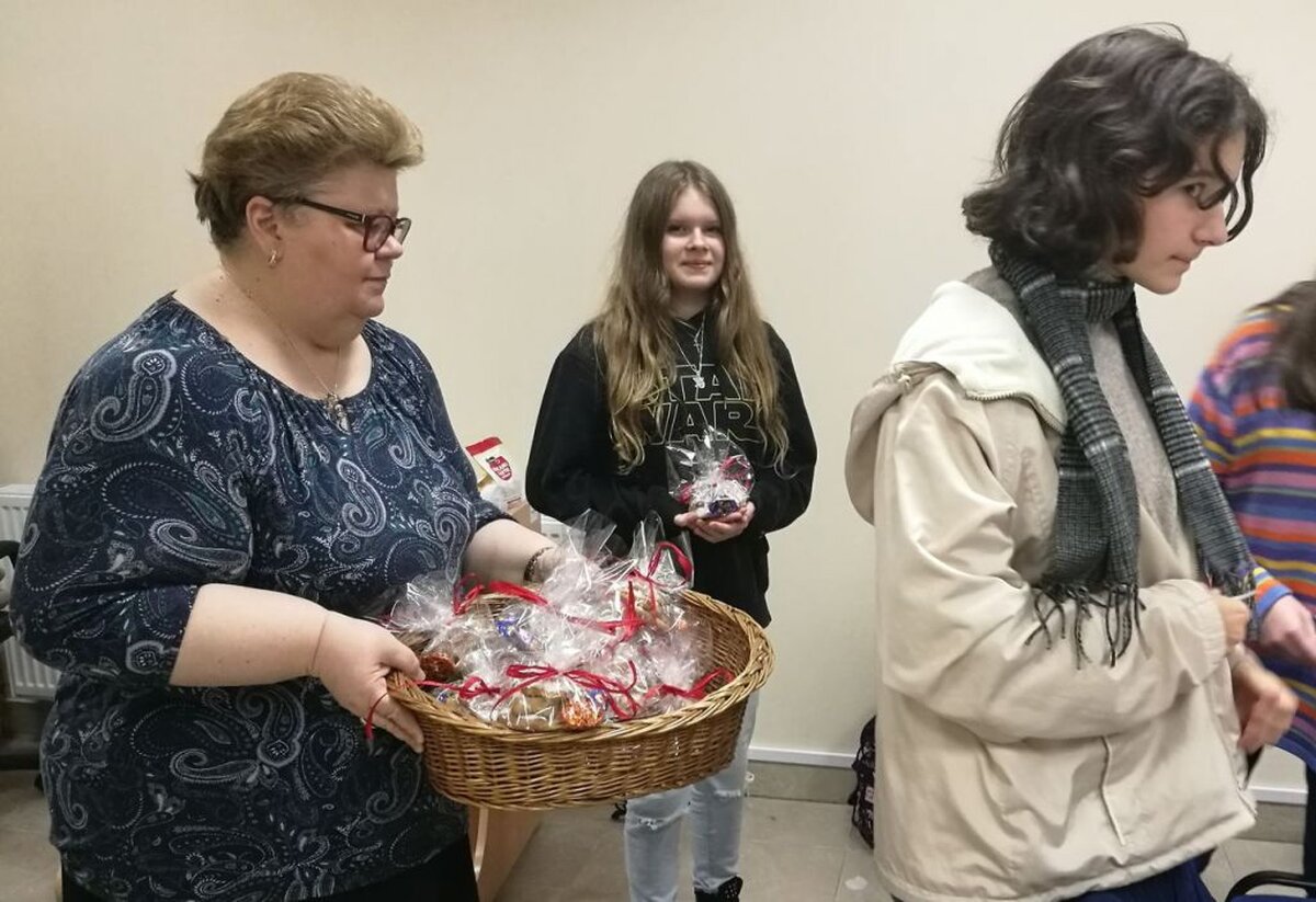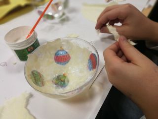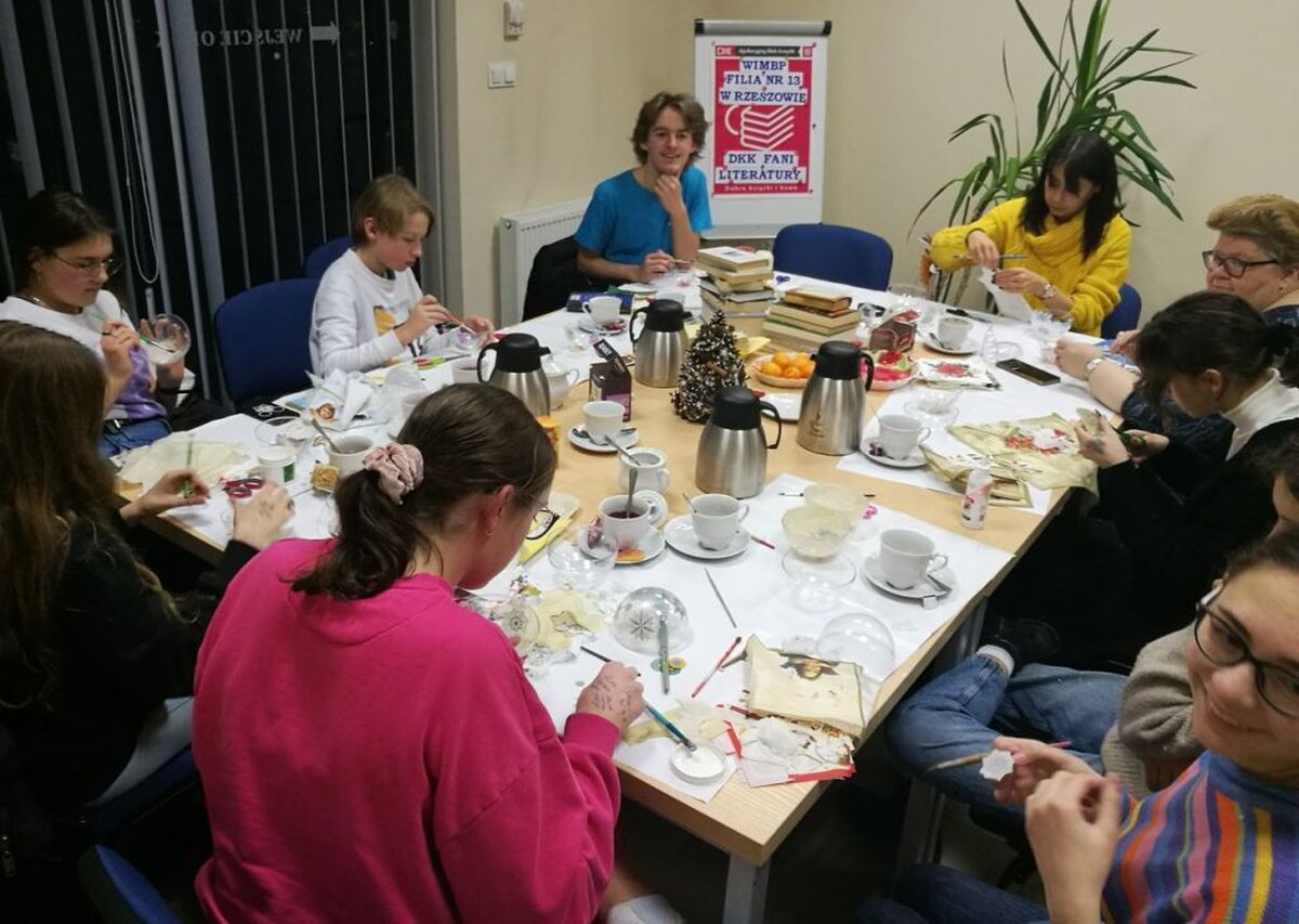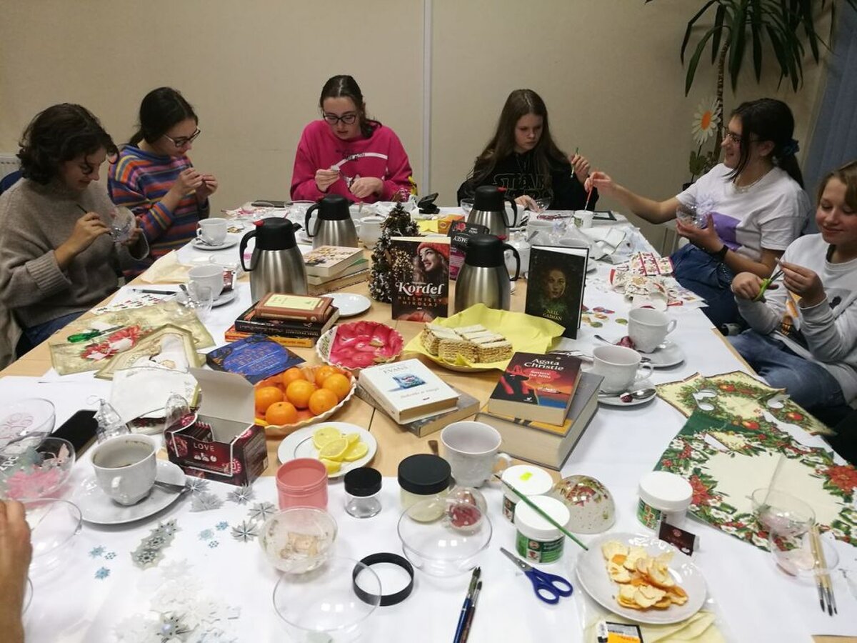 W czasie grudniowego "Spotkania przy herbacie" mieliśmy nastrój bardzo świąteczny. Rozmawialiśmy o książkach, które planujemy przeczytać w czasie świąt oraz o tych, których akcja dzieje się w Boże Narodzenie. Ale to nie wszystko. Tym razem rozmowy o książkach połączyliśmy z ozdabianiem bombek techniką decoupage’u. Uczniowie uczyli się, jak wykorzystując serwetki i papier ryżowy stworzyć świąteczne ozdoby. Na koniec czekała nas jeszcze niespodzianka w postaci piernikowych prezentów przygotowana przez p. Beatę Terlicką - kierowniczkę biblioteki osiedlowej.