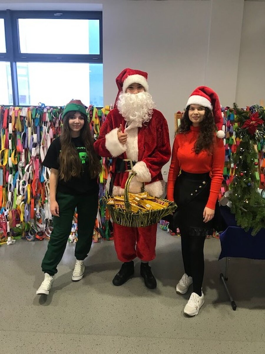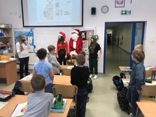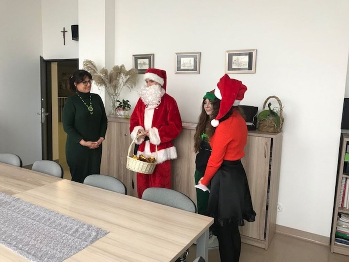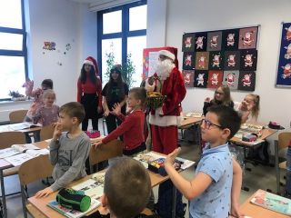 Jak co roku, 6 grudnia, do naszej szkoły zawitał Święty Mikołaj. Wraz z zaprzyjaźnionymi pomocnikami z Samorządu Uczniowskiego odwiedził wszystkich uczniów i pracowników SP18 obdarowując ich słodkimi upominkami. Wizyta niespodziewanych gości wywołała wiele radości i uśmiechów na twarzach, wprowadzając wszystkich w radosny klimat zbliżających się Świąt Bożego Narodzenia.