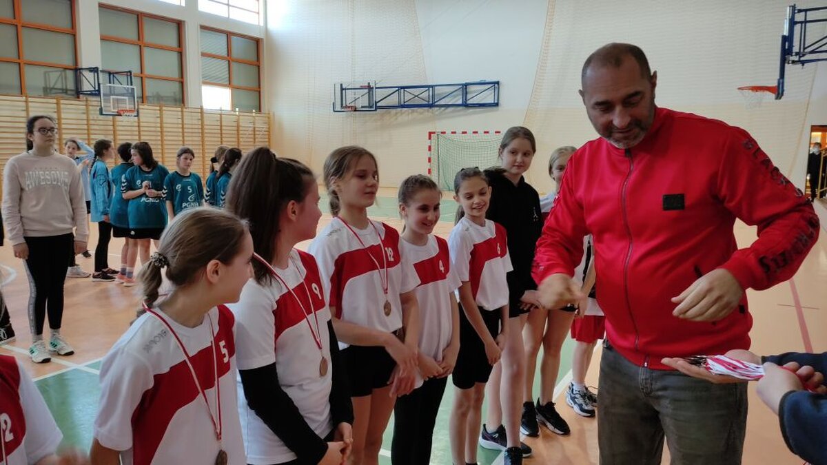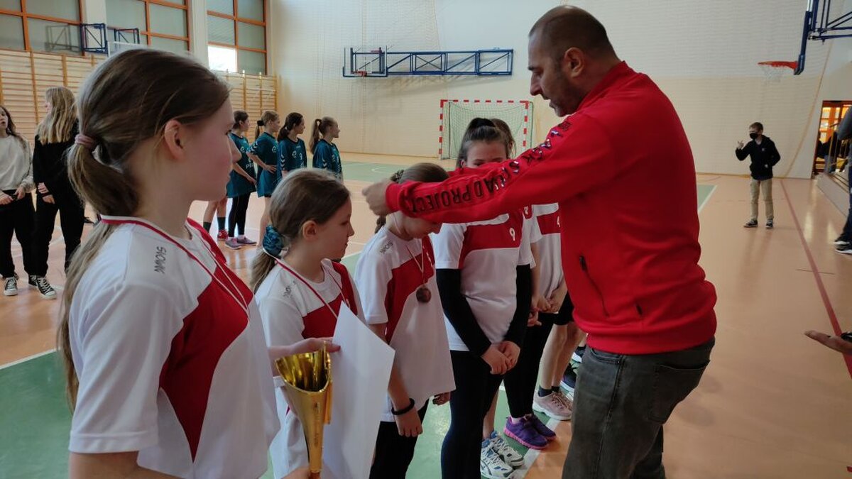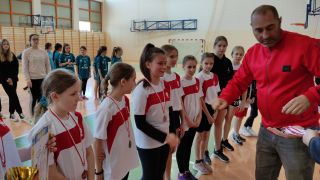 W ubiegłym tygodniu w Szkole Podstawowej s. Pijarek w Rzeszowie odbył się turniej finałowy Igrzysk Dzieci w piłce ręcznej dziewcząt. W zawodach wzięła udział reprezentacja naszej szkoły. Niestety nie obyło się bez małych problemów z 16 dziewczynek w finałach mogło wziąć udział jedynie 11 (kwarantanna), w tym żadna z rocznika 2009. Nasz młody zespół walczył bardzo dzielnie. W pierwszym meczu uległ wprawdzie drużynie SP 9 2:8, ale w kolejnym nasze młode zawodniczki pokonały późniejsze zwyciężczynie turnieju zespół gospodarzy 9:6. Wszystkie 3 zespoły zgromadziły taką samą liczbę punktów i o kolejności zdecydował stosunek bramek. Niestety nie był on dla nas korzystny i wystarczyło to jedynie do zajęcia 3 miejsca.
