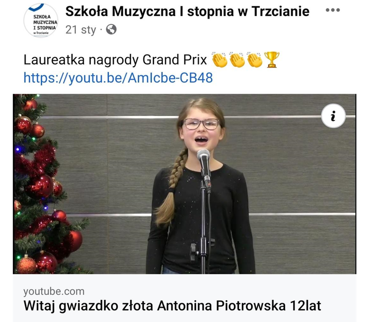 Okres świąt Bożego Narodzenia był dla naszej uczennicy Tosi bogaty w liczne osiągniecia muzyczne.