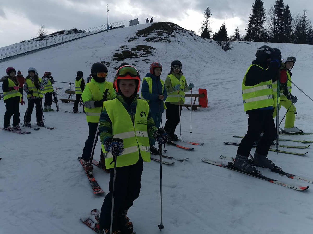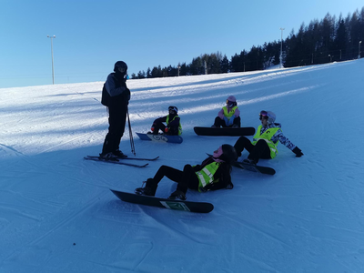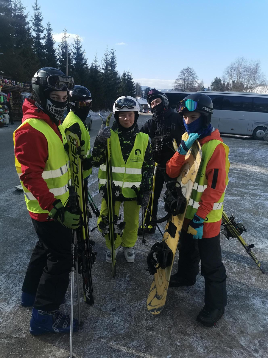 W dniach 11-15 lutego odbył się obóz narciarsko - snowboardowy zorganizowany dla uczniów naszej szkoły. Swoją bazę mieliśmy jak zwykle w Szczawnicy w gościnnej „Wilii Horwatówka”. „Białe szaleństwo” rozpoczęliśmy na stoku w Jaworkach, gdzie pod okiem instruktorów szlifowaliśmy swoje umiejętności jazdy na desce snowboardowej i nartach. W kolejnych dniach bawiliśmy się na trasach narciarskich w Kluszkowcach. Pogoda była wyśmienita, warunki narciarskie bardzo dobre, a widok ze stoku na Tatry zapierał dech w piersiach. Oprócz nauki jazdy na nartach i desce wieczorami mogliśmy zagrać w bilard. W przedostatnim dniu wyjazdu wybraliśmy się do Białki Tatrzańskiej, gdzie korzystaliśmy z atrakcji Aquaparku „Terma-Bania”. Wszyscy wrócili zdrowi wypoczęci i co najważniejsze bez kontuzji.