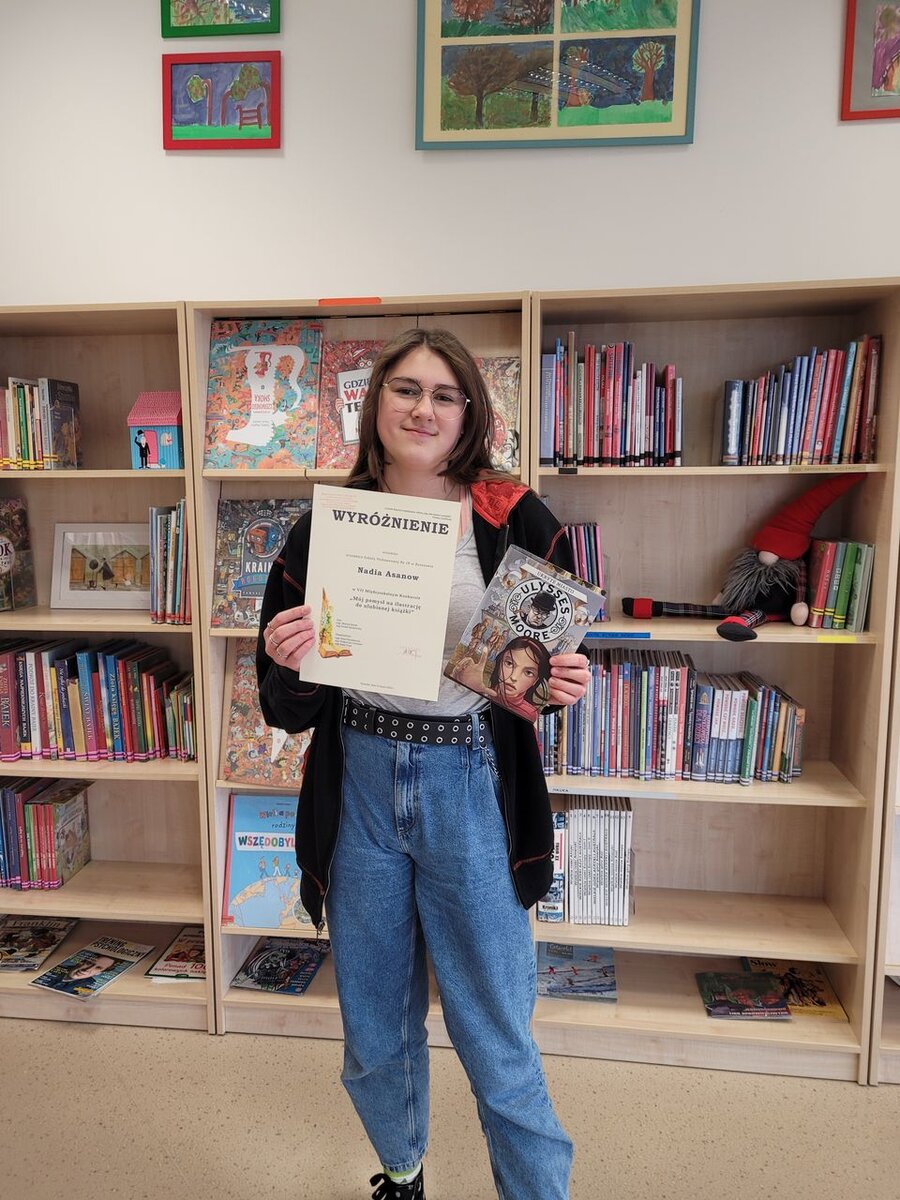 Poznaliśmy wyniki VII Międzyszkolnego Konkursu Plastycznego "Ilustracja do ulubionej książki", organizowanego przez Szkołę Podstawową nr 22 w Rzeszowie. Miło nam poinformować,że praca uczennicy klasy 7b - Nadii Asanow, zdobyła wyróżnienie w tym konkursie.