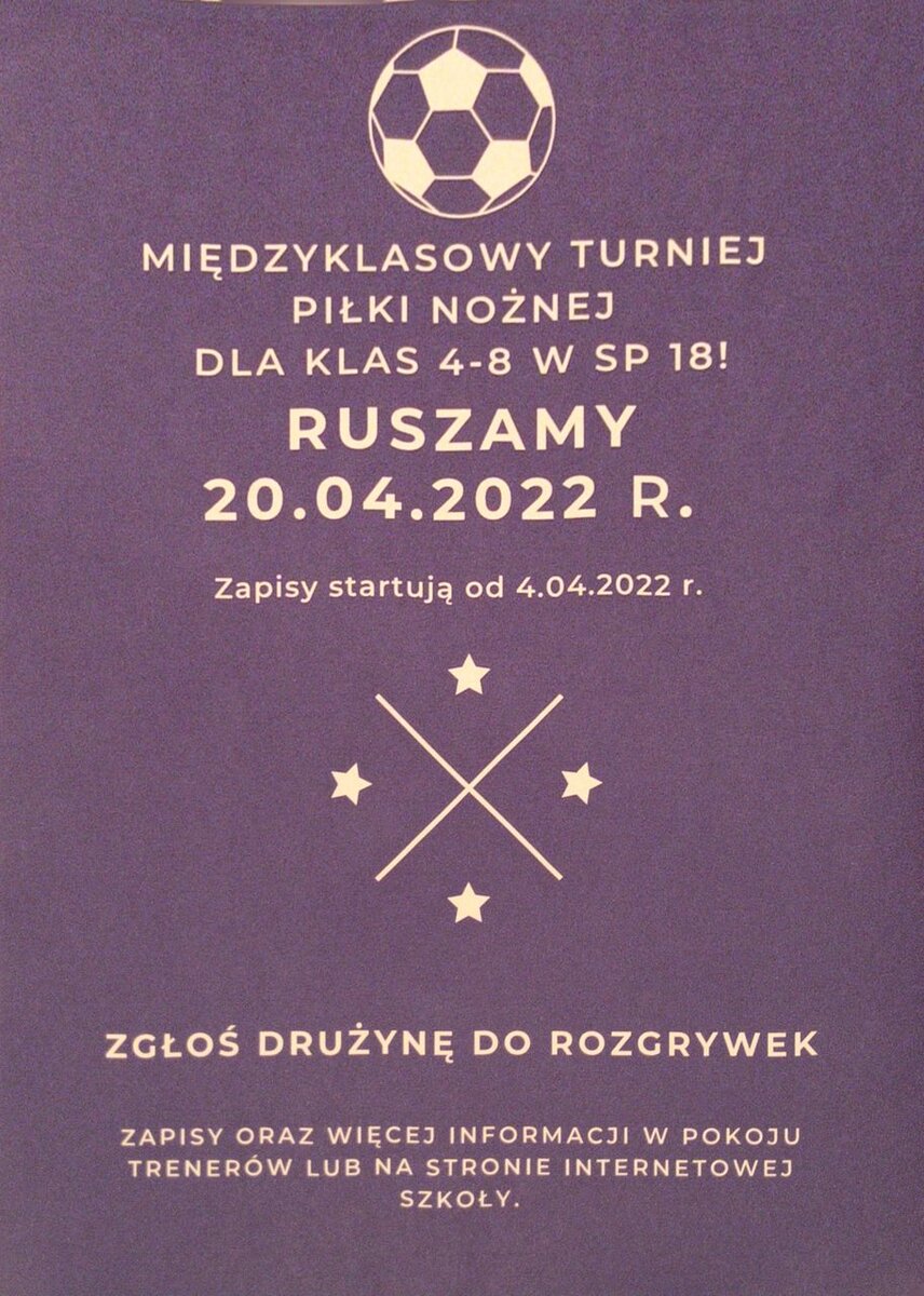Regulamin Turnieju klasowego Piłki Nożnej w SP 18 dla klas 4-8