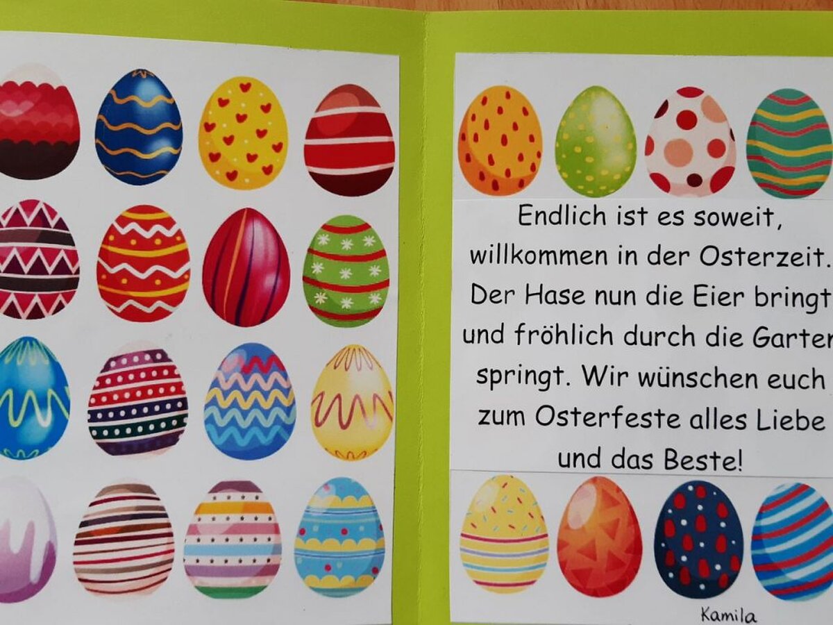Uczniowie naszej szkoły złożyli życzenia świąteczne w języku niemieckim uczniom szkoły w Grecji. W projekcie wzięło udział 20 uczniów naszej szkoły, którzy uczą się j. niemieckiego i 20 uczniów z Grecji. W celu zapoznania się uczestnicy napisali do siebie listy, a że zbliżają się Święta Wielkanocne wykonali również piękne kartki świąteczne. Z niecierpliwością czekamy na odpowiedź kolegów z Kastorii o czym będziemy niebawem pisać.