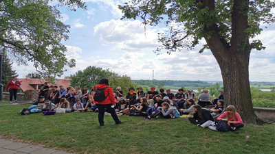 W słoneczny, majowy dzień uczniowie na początek odwiedzili Wąwóz Królowej Jadwigi, potem spacerowali po uliczkach zabytkowej starówki, słuchali opowieści o miejscowym rzemiośle i legendach, a także historycznych wydarzeniach, które nie omijały Sandomierza. Następnie zwiedzili Podziemną Trasę Turystyczną pod rynkowymi kamieniczkami, a także wybrali się w krótki rejs statkiem "Syrenka" po Wiśle, by z innej perspektywy spojrzeć na tę piękną miejscowość. Czwartoklasiści rozglądali się także, czy czasem w okolicy nie spotkają serialowego Ojca Mateusza. Tym razem się to nie udało, ale wycieczka została zgodnie uznana przez wszystkich uczestników za niezapomnianą.